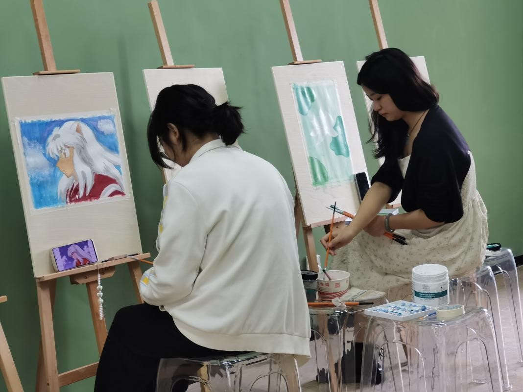 生活再忙,也不要停止学习的脚步。晚饭后,来到书院自习室,琳琅满目的书籍让我应接不暇。自习室醒目的标语:“反思昨天,立足今天,把握明天”,“先做该做的事,再做喜欢的事”让我瞬间充满斗志。专注的学习过后,去往诗画工坊,感受笔尖色彩跃动的魅力,充实而又愉快的夜晚get!