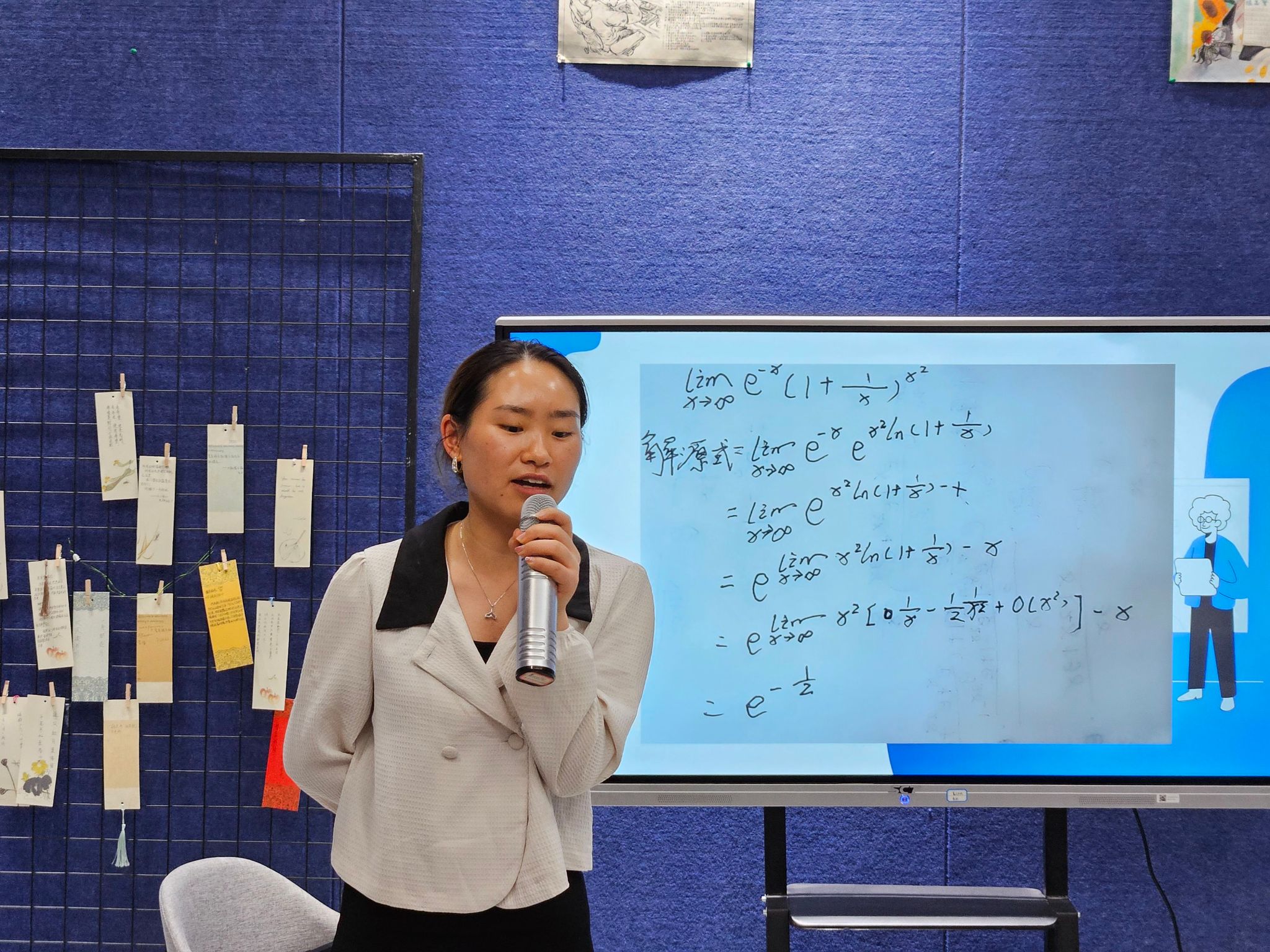 在活动过程中,数学角团队除设置的分享例题环节外,也组织其他同学小组式研讨,讨论学习中遇到的各种问题,拓展数学思维能力,提倡一题多解,将大学数学知识联合运用。其中,三位指导老师就竞赛活动展开研讨,通过问题层层递进,深入浅出,逐一攻破教学难题,解答学生疑惑,上演一场师生互动课堂,亦师亦友,增强学生备战竞赛信心,积累知识题库量。比如:洛必达法则运用的前提、常见极限公式等重要知识点进行归纳,阐述了函数极限中的技巧运用。