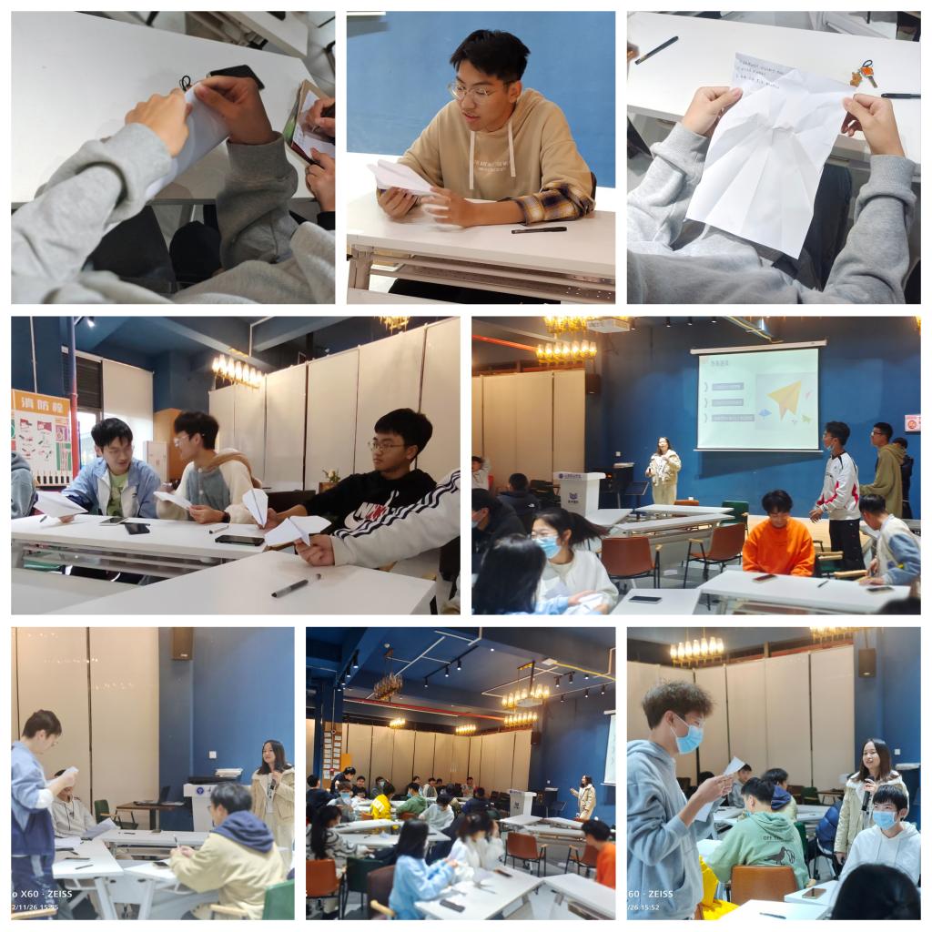 接下来,尹老师让大家将手中的A4纸折成纸飞机,随后把自己手中的纸飞机放飞。同学们纷纷积极响应,都站起来,使劲全力飞出手中的纸飞机,有的还不忘像小时候一样,对着纸飞机哈一口气,整个活动现场围绕着喜悦的气氛,想必大家都希望自己能够走得更远,有着一个好的发展,好的前程。当同学们仰着头看着纸飞机飞过的时候,尹老师又让大家每人都去捡取一架别人的纸飞机,拆开阅读了别人的答案后,让大家思考与自己的想法有什么共同处、有什么不同处,同时邀请大家进行分享。同学们积极站起来分享各自手中拿到的答案,尹老师在旁聆听,并做出点评。通过这个简单的游戏,同学们都进入了状态。