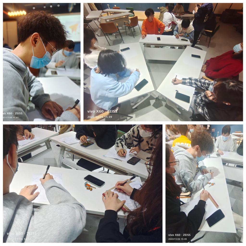 首先,尹老师分享了她以前带的学生毕业之后找不到工作的现象,她指出大部分是因为在大学期间没有做好职业生涯规划工作,没有培养相关能力,所以才导致找工作难的结果。她希望在座的软件工程9班学子都能够对“职业生涯规划”引起重视。在尹老师分享完后,她通过一个热身游戏,循序渐进地将同学们带入到这个活动中来——在A4纸上写下三个问题的答案:①入学前对大学的想象?②入学至今对大学的感受?③未来想要从事什么工作及原因?同学们纷纷低下头奋笔疾书着,有的边写边和身边的同学分享,就好像面对着这三个问题,有着说不完的答案一样。