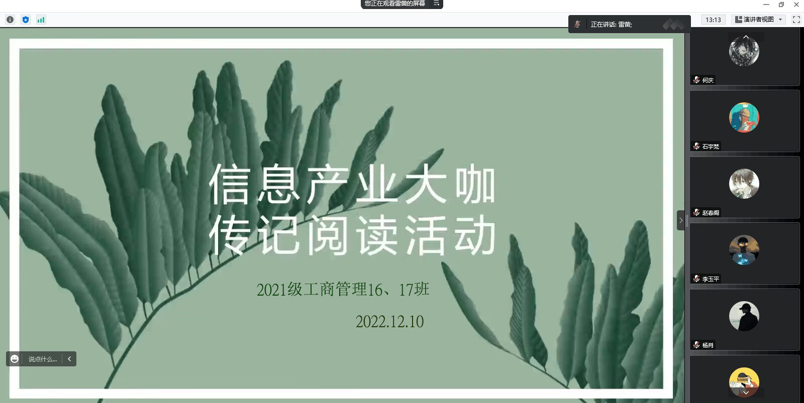 本次活动在雷蕾老师的总结声中落下了帷幕,希望同学们多多的去阅读大咖传记,从他们的传奇人生中感悟成功的艰辛,积累更多的人生经验,创造出更加辉煌的未来!