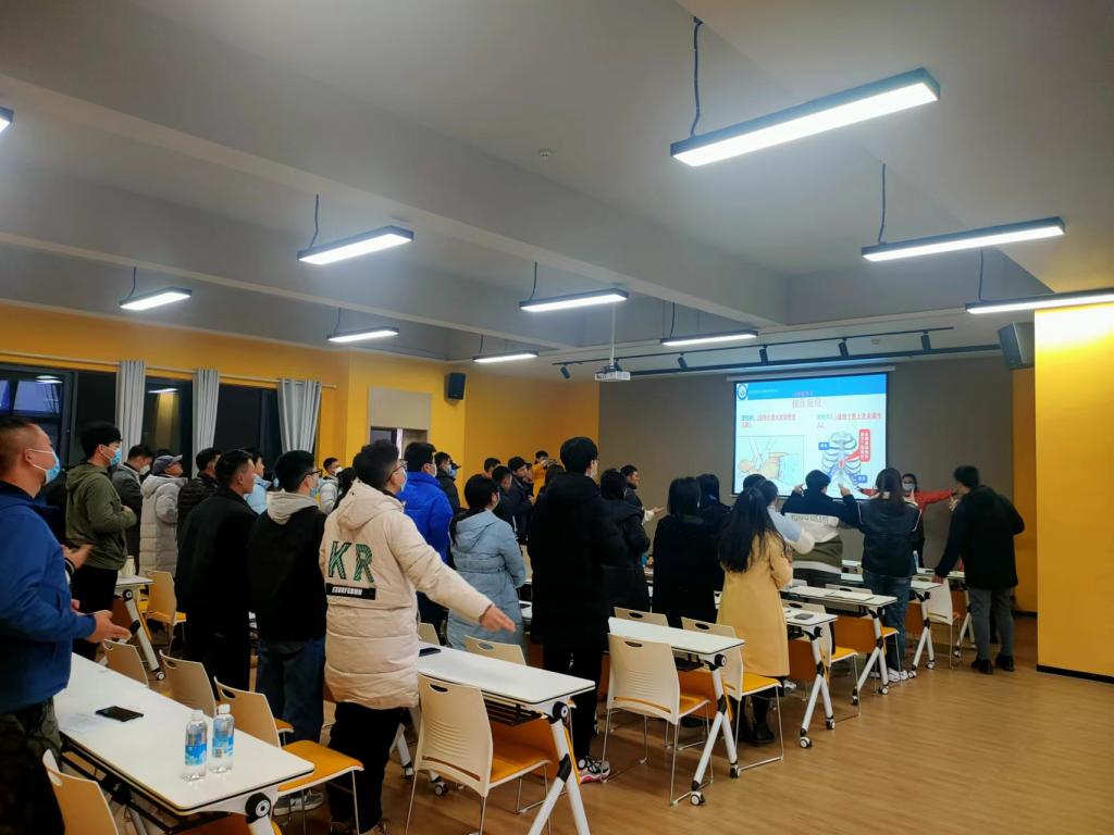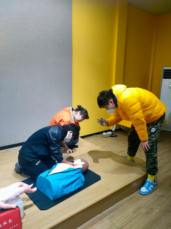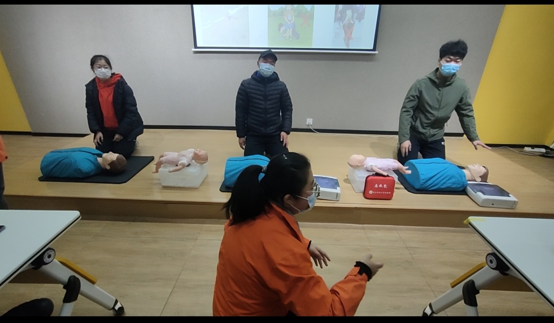 第一部分,理论学习。培训会上,培训专家用数据佐证急救知识对降低意外死亡率的有效性,重点强调了学习心肺复苏术的重要性,讲述了如何判断救助者是否属于需要心肺复苏患者,包括意识、呼吸、心跳的判断,然后讲述了心肺复苏术分为两个部分:胸外心脏按压、人工呼吸,具体讲解了救助过程中需要注意的问题和经常出现的错误,最后教给大家判断心脏复苏有效的指征。除此之外,将其他三大急救术和内科、外科、急症处理方式做了详细讲解,为后续实操铺垫。