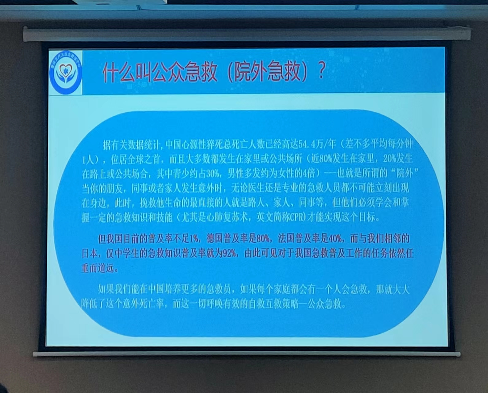 当生命处于急需被挽救的关键时刻,也许你的援手就能点燃一份希望。不是所有的危机时刻都能安然撑到救护车的到来,也不是所有的突发事件都能够在医务工作者的保护范围之内,而急救可以让你们拥有与死神抢时间的能力。不要觉得这一切离你太遥远,也不要觉得不是自己的工作就与你无关,急救是一种守护的能力,一种不放弃的心态。