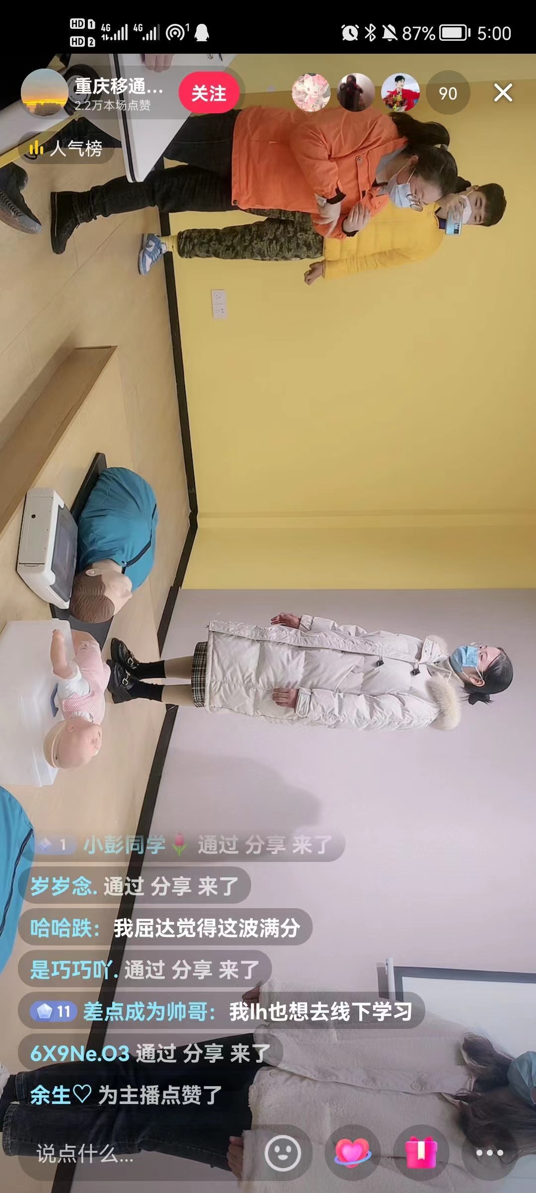 根据后台数据显示,线上观众有近500人,点赞次数在短短的时间内达到了2.4万次。此次培训线上反响很好,有学生在聊天区互动时讲到:“好想去现场学习!”、“我感觉自己已经学会了”、“这些知识真实用!”等等,可以看出,学生对此次的急救培训很是认可,而这将鼓舞我们将今后的培训办的更好。