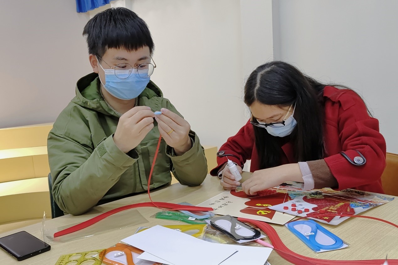 为锻炼同志们的动手能力和进一步开发创造性思维、发挥创造能力,12月9日,重庆移通学院綦江校区通信与信息工程学院党支部于綦河书院大咖阅读中心开展了以“学习二十大,奋进新征程”为主题的党日活动。本次活动通过制作非物质文化遗产——衍纸画的活动形式,让党员和积极分子们在活动中学习领悟“党的二十大”精神。