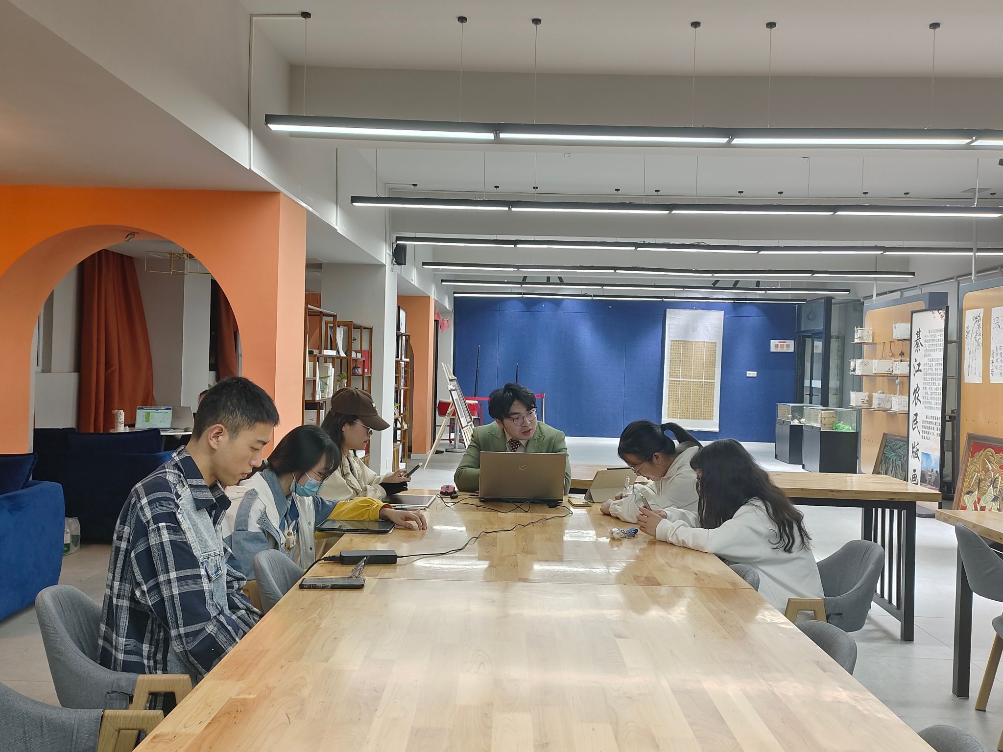 2023年4月4日晚上19:00地域文化与城市发展研究院彭浩老师带着5位同学在綦河书院一号楼晨钟文化展厅开展了学习关于瀛山古诗的活动。此次活动旨在让同学们感受到古人笔下的瀛山之美,为接下来的瀛山之行做了一个前期的准备。