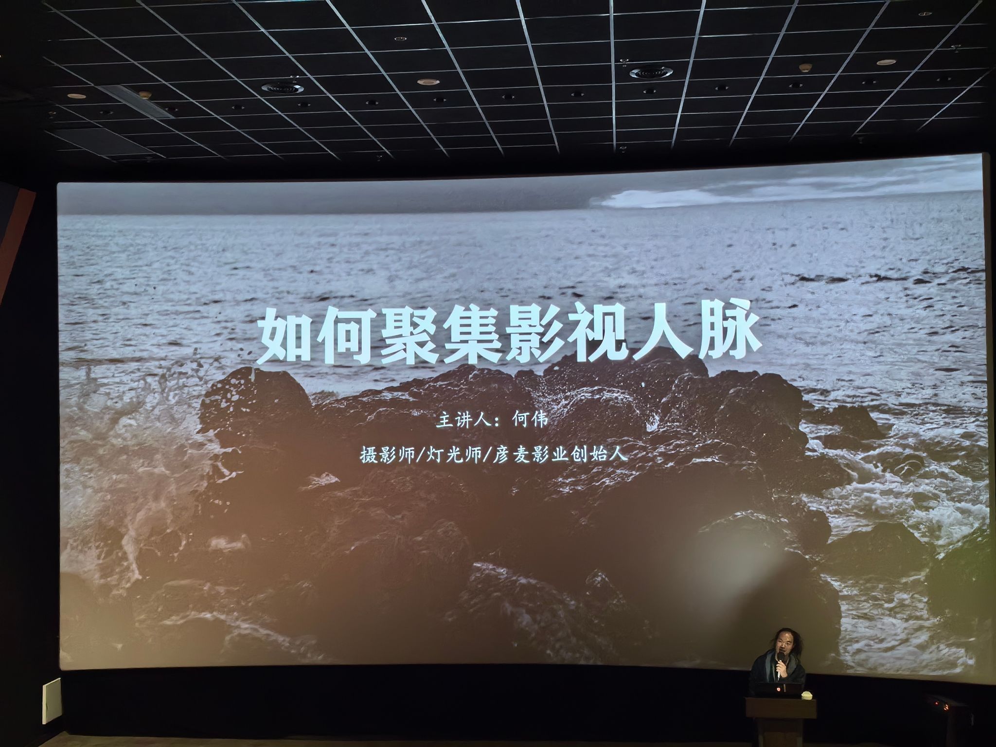 2024年11月20日,在万画影城4号厅内,实训班的同学们满怀期待地迎来了何伟老师的第二节企业课程——《如何聚集影视人脉》。作为摄影师、灯光师以及彦麦影业的创始人,何伟老师以其丰富的经验和独到的见解,为在场的同学们带来了一场精彩纷呈的知识盛宴。