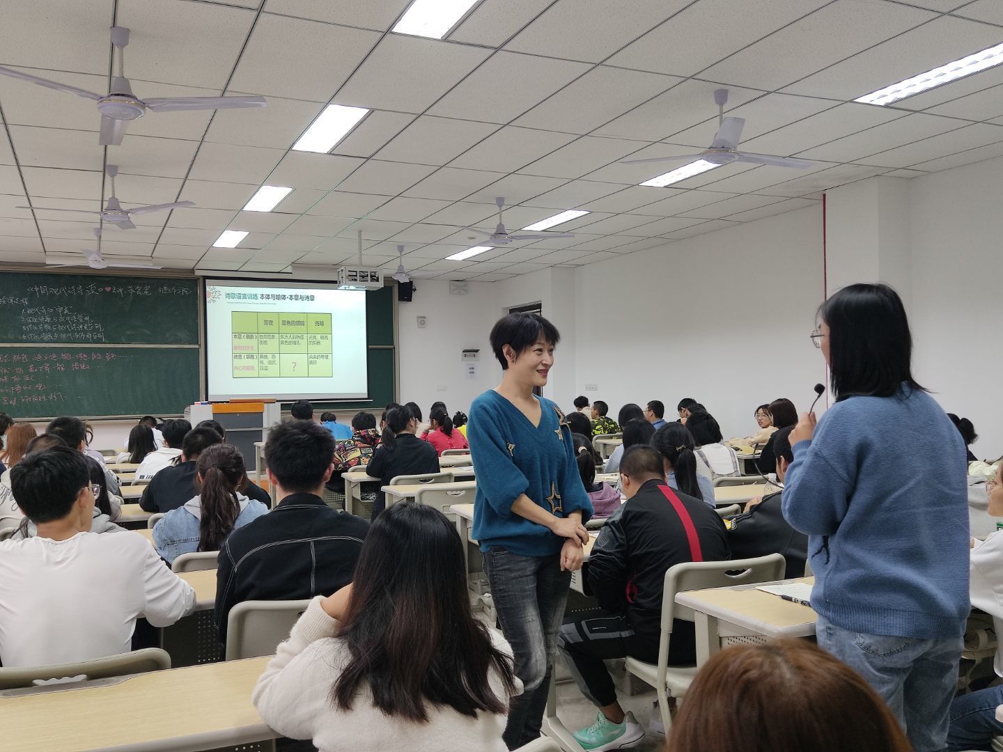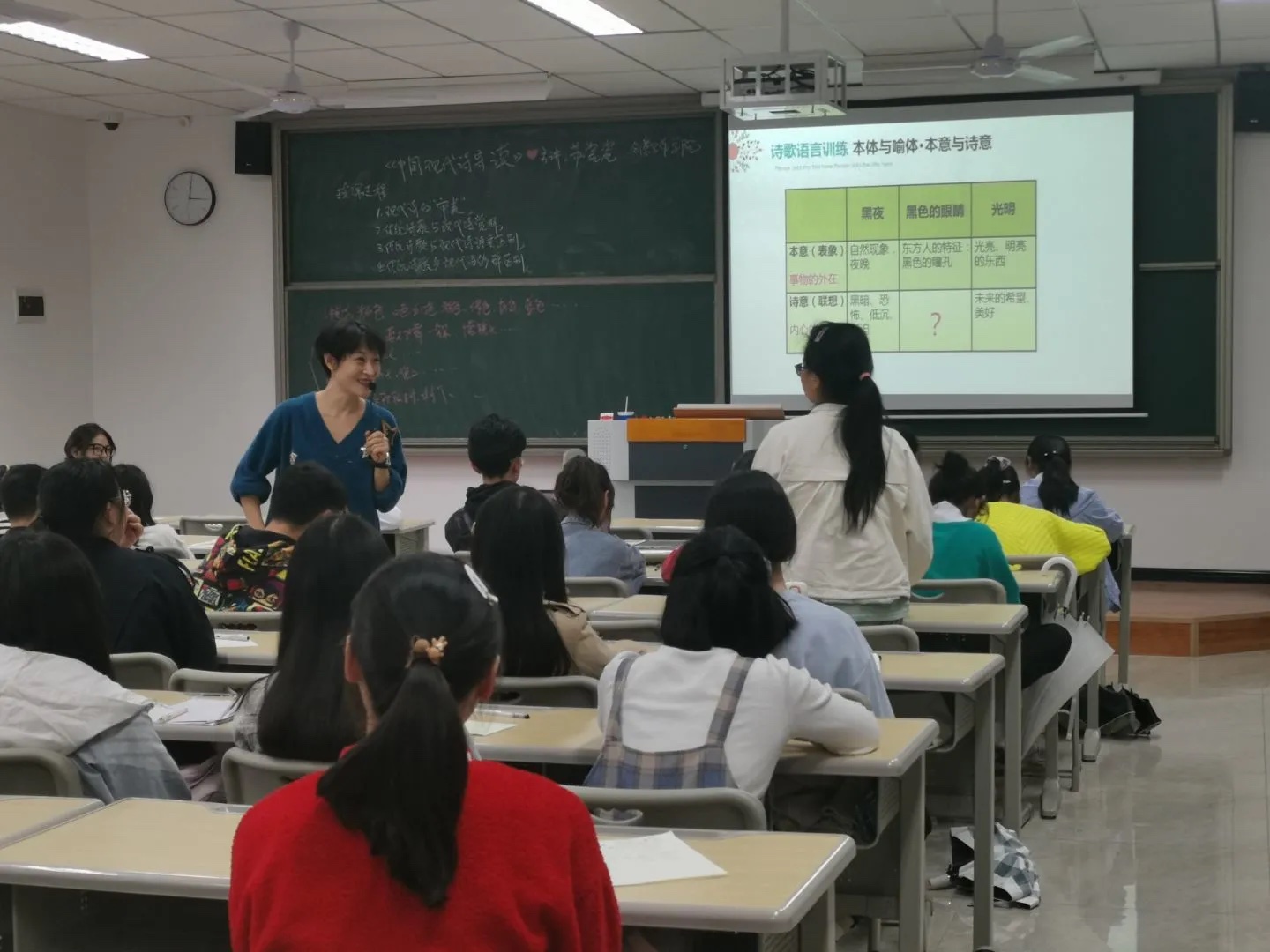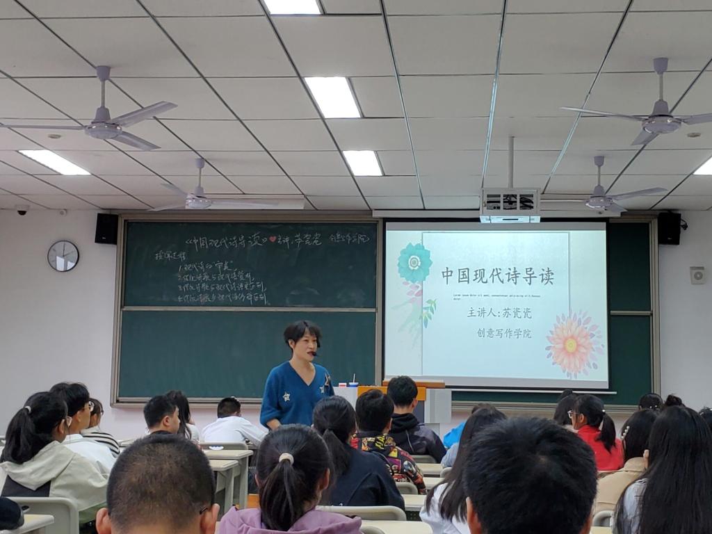 在同一时间,仁者楼303教室里,苏瓷瓷老师正带领同学们畅游诗海。