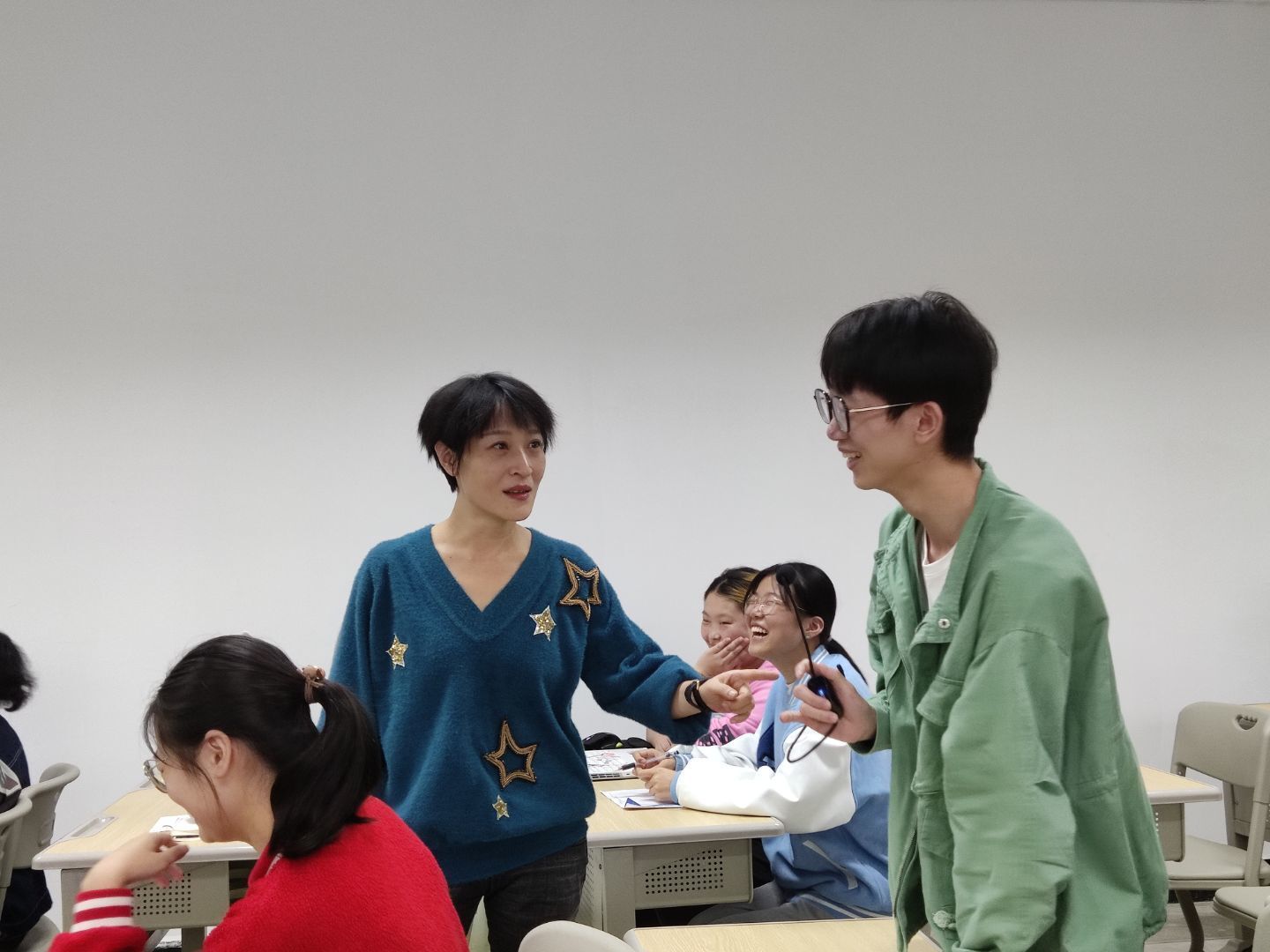 哦耶!得到回应的同学在教室外的楼道上兴奋得相互击掌,蹦跳了起来……