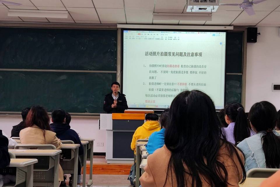 作为学院宣传(调研)部门的指导老师,李进老师还向同学们强调,在某种程度上,宣传(调研)部是学院的“传声筒”,是学院完满教育的“发声器”,要特别注重新闻宣传的“声音、声量和声色”,展现好学院完满教育的风采,记录好同学们活动的精彩。“新闻图片的光线、构图都要讲究,突出活动主题和人物状态,尽可能地向受众讲述故事。”