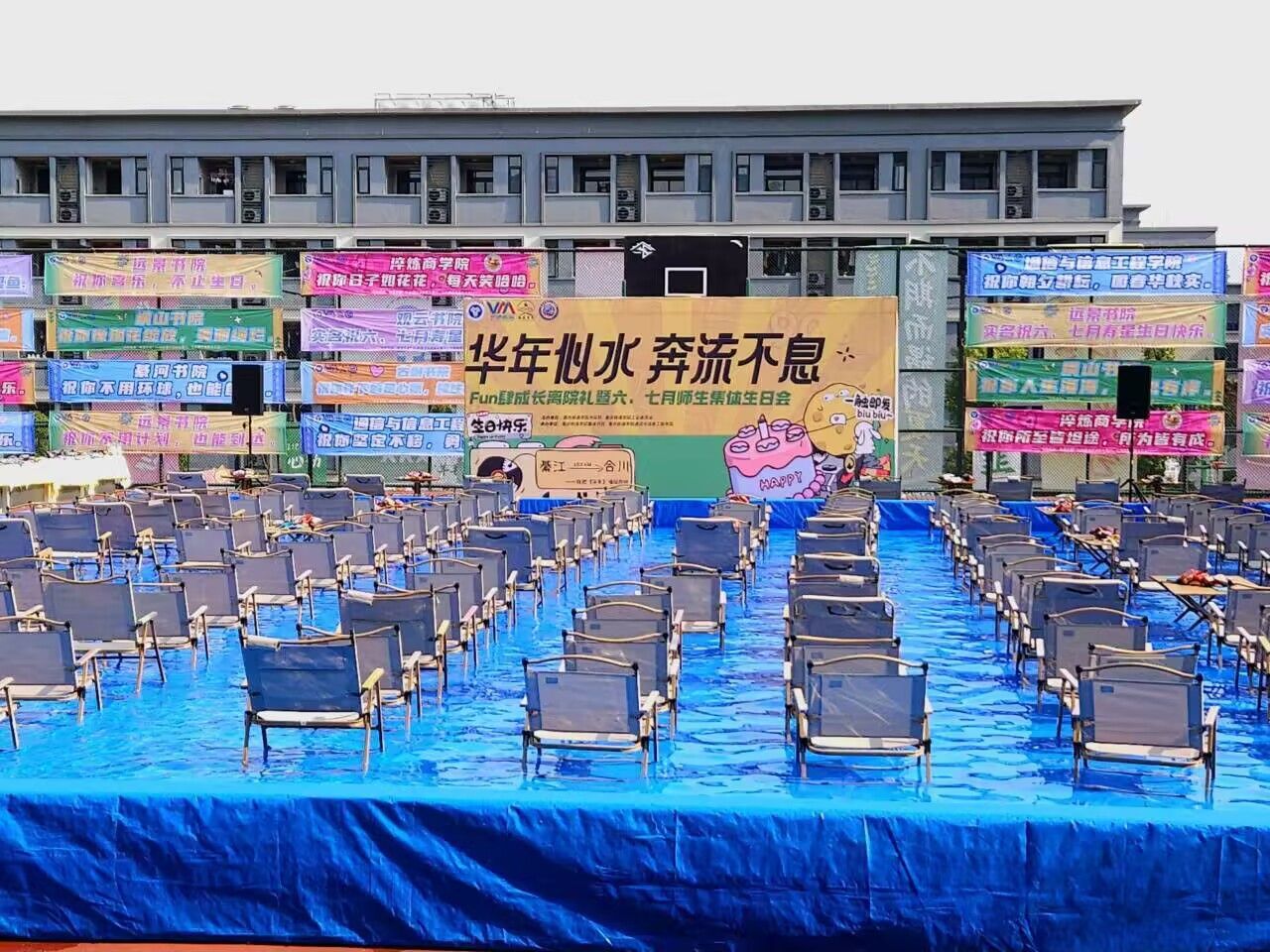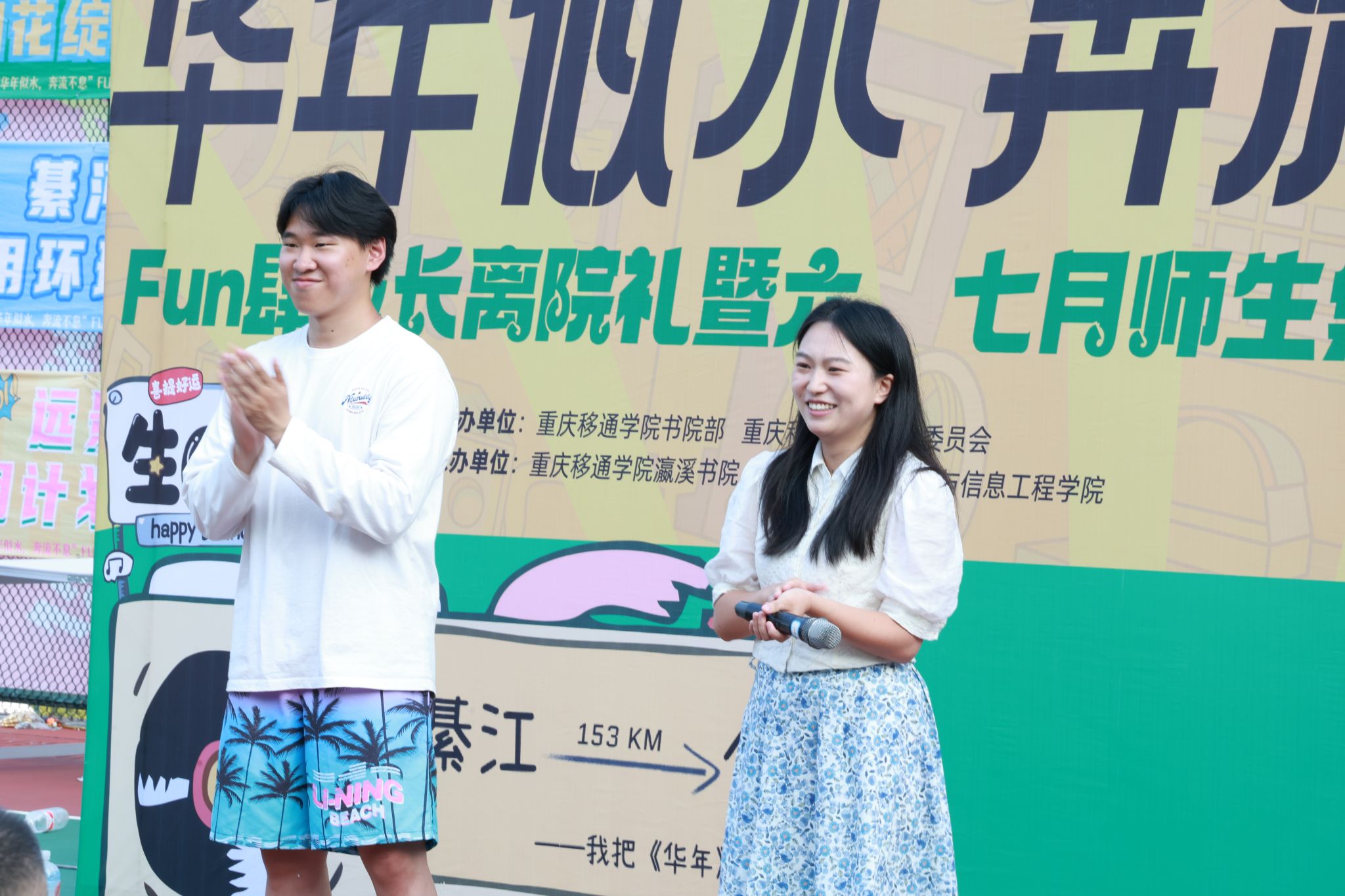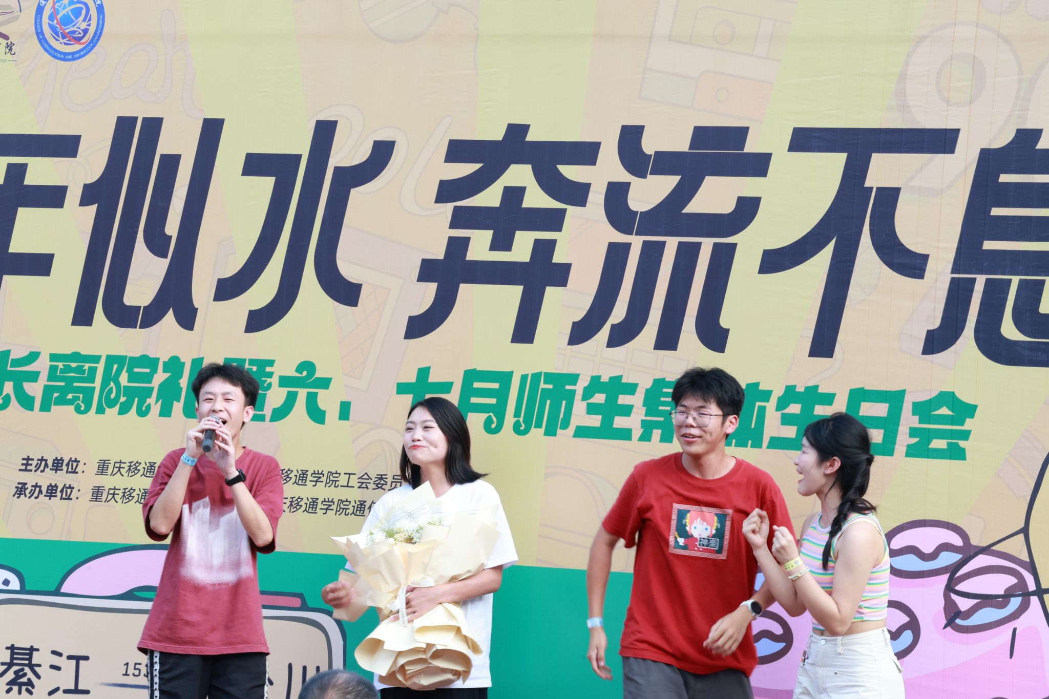 别离的夏夜荡漾着温情,火花与星辉见证着完满。在这个六月,瀛溪书院欢送学子们离开綦江校区大家庭的怀抱,前往合川校区,去感受另一个家园的温暖。由重庆移通学院綦江校区书院部、工会委员会主办,瀛溪书院、通信与信息工程学院携手打造的“华年似水,奔流不息”Fun肆成长离院礼暨六、七月师生集体生日会,于6月14日在瀛溪书院旁的篮球场热烈开场。本次离院礼暨生日会共设“汇聚成溪·共忆青春、包容成河·共同成长、蜕变成江·化茧成蝶、奔赴成海·破浪启航”四个篇章,深植情感的沃土,让离院学子与生日寿星感受书院一站式家文化的温情氛围,将生日会与离院礼同傣族泼水节相融,“幸运、健康、快乐”的水文化符号贯穿活动始终,蕴含对离院学子们美好真挚的祝福。