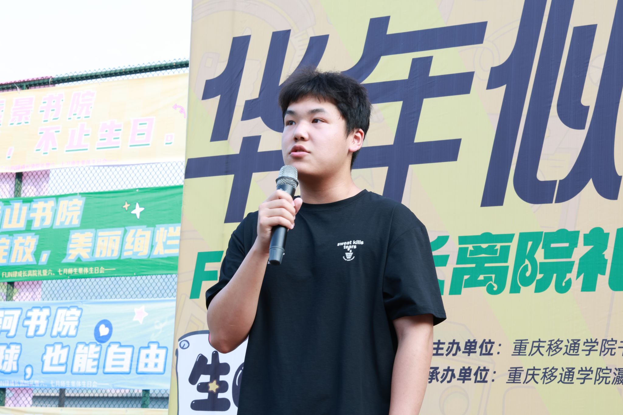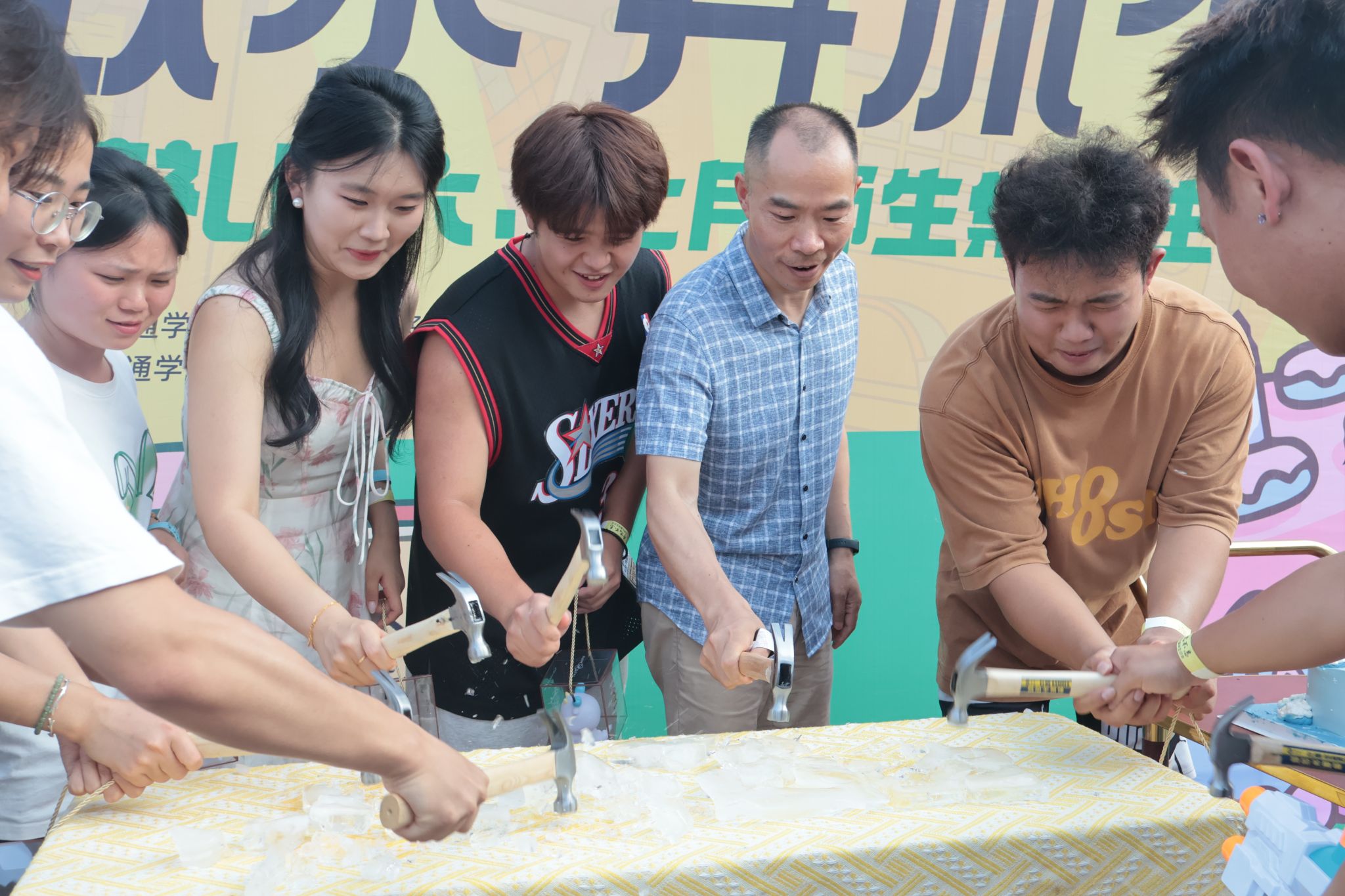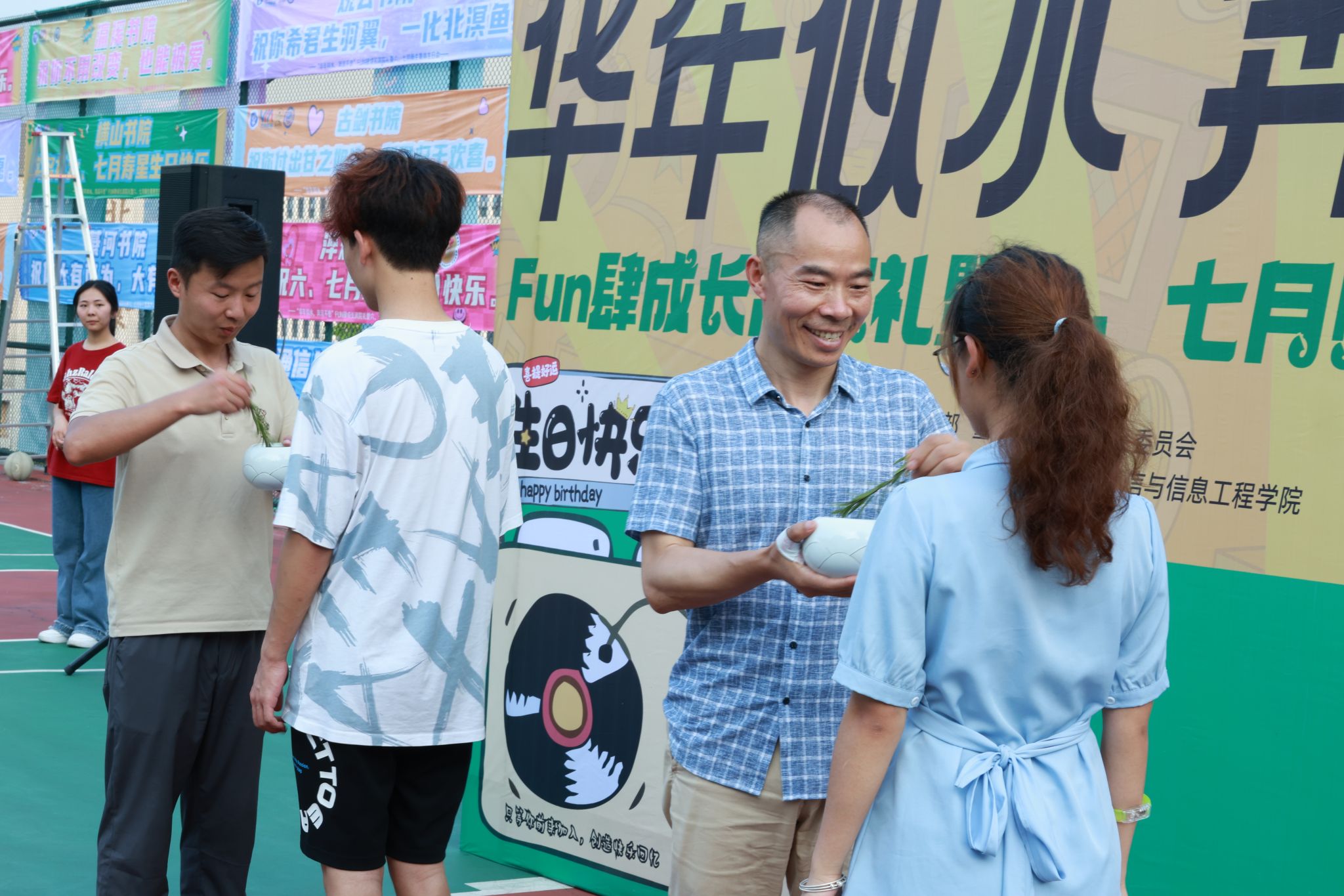 别离的夏夜荡漾着温情,火花与星辉见证着完满。在这个六月,瀛溪书院欢送学子们离开綦江校区大家庭的怀抱,前往合川校区,去感受另一个家园的温暖。由重庆移通学院綦江校区书院部、工会委员会主办,瀛溪书院、通信与信息工程学院携手打造的“华年似水,奔流不息”Fun肆成长离院礼暨六、七月师生集体生日会,于6月14日在瀛溪书院旁的篮球场热烈开场。本次离院礼暨生日会共设“汇聚成溪·共忆青春、包容成河·共同成长、蜕变成江·化茧成蝶、奔赴成海·破浪启航”四个篇章,深植情感的沃土,让离院学子与生日寿星感受书院一站式家文化的温情氛围,将生日会与离院礼同傣族泼水节相融,“幸运、健康、快乐”的水文化符号贯穿活动始终,蕴含对离院学子们美好真挚的祝福。