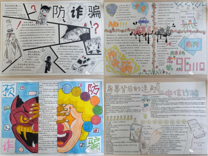 激情满满的手抄报大赛,带你学习反诈知识,识破各类骗局。11月14日,为加强师生的反诈意识,增强学生的识骗、防骗能力,切实营造警民携手、全校共创防范网络电信诈骗的良好校园氛围。通信携手信息工程学院“飞鹰”反诈宣传志愿专项支队,与通惠派出所联合开展反诈宣讲活动和以“筑牢防诈反诈的坚实堤坝”为主题的预防网络、电信诈骗系列反诈系列活动,深刻揭露不法分子实施电信诈骗的手法。另组织通信学院21、22级班团参与线上答题,并按时提交截图,达到覆盖率100%,不断增强学生的识骗、防骗能力,切实营造警民携手、全校共创防范网络电信诈骗的良好氛围。