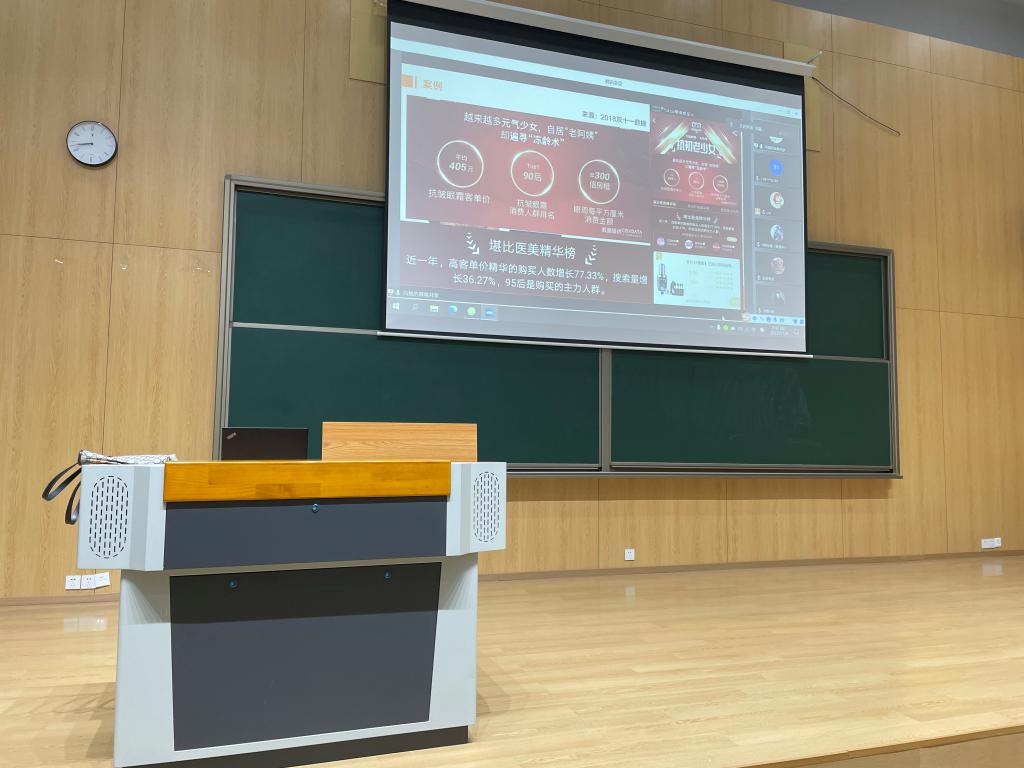 为了推进全校新商科教育,深化产教融合,拓展同学们的营销视野,淬炼国际商学院有幸邀请到校企合作单位“重庆不贰科技集团有限公司”培训事业部经理周欣茹以及公司合作伙伴“淘宝教育”的资深讲师冯慧,于11月8至9日进课堂先后为同学们开展了四场题为“玩转内容、破解营销密码”的讲座。因为疫情原因,临时将这次线下讲座改为线上进行,学院龚玲、杜嘉、杨佩璇三位老师参加了本次讲座。