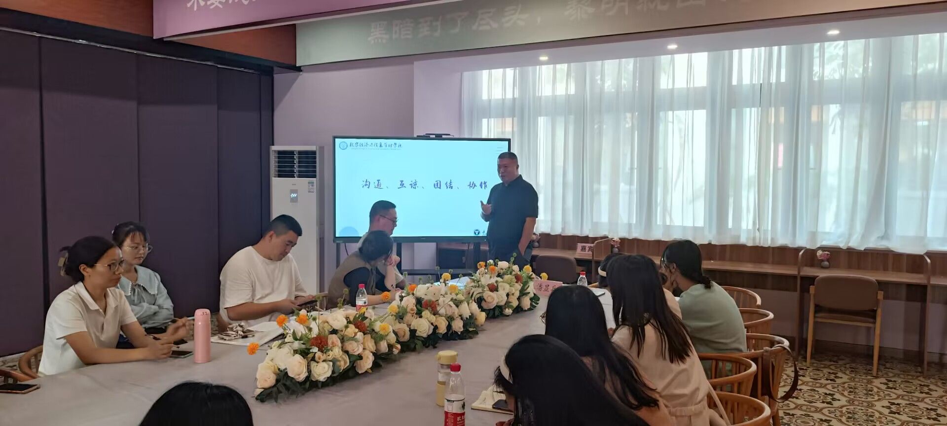 潘院长首先从专任教师、辅导员、教辅人员三个角色分工,分别介绍了学院教职工各自的岗位职责,他指出全体教师要尊重学生、鼓励学生、服务学生,并尽可能地挖掘学生长处,从生活、学习方面不同角度提供帮助,促进学生成长,培养学生成为社会所需要的复合型人才。