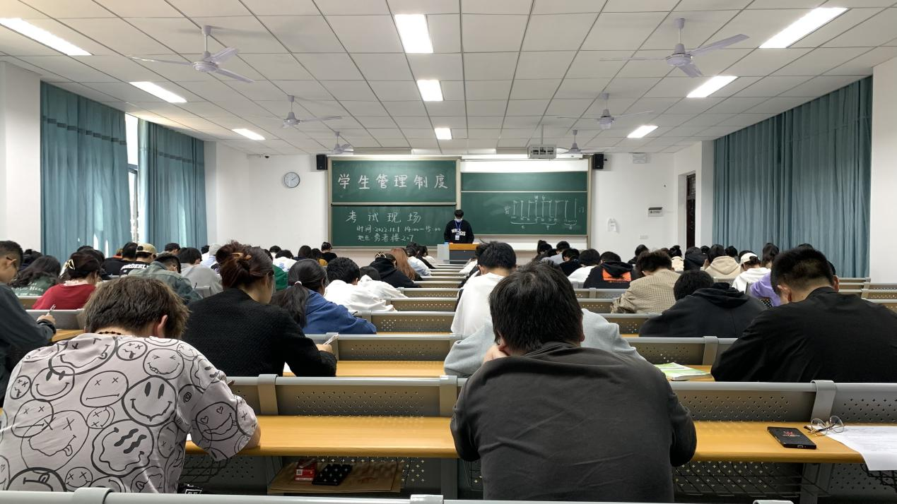 11月1日,学生处在勇者楼207教室开展学生管理制度学习成果大检查,随机抽取100名来自不同学院、不同年级的学生进行现场闭卷考试。本次考卷由学生处根据《学生管理制度》文件内容出题,围绕日常管理、奖勤助贷、评优评先等版块知识进行了考查。为保障考试的真实有效性,严肃考风考纪,实行封闭试卷、按号就坐、多人监考等制度,杜绝学生作弊行为;考试过程中,考场秩序井然,同学们保持着对考试严肃的态度,秉承诚信考试的原则认真进行答题;成立评阅小组,实行交叉阅卷,试卷评阅结束将学生成绩及分析反馈至各学院。