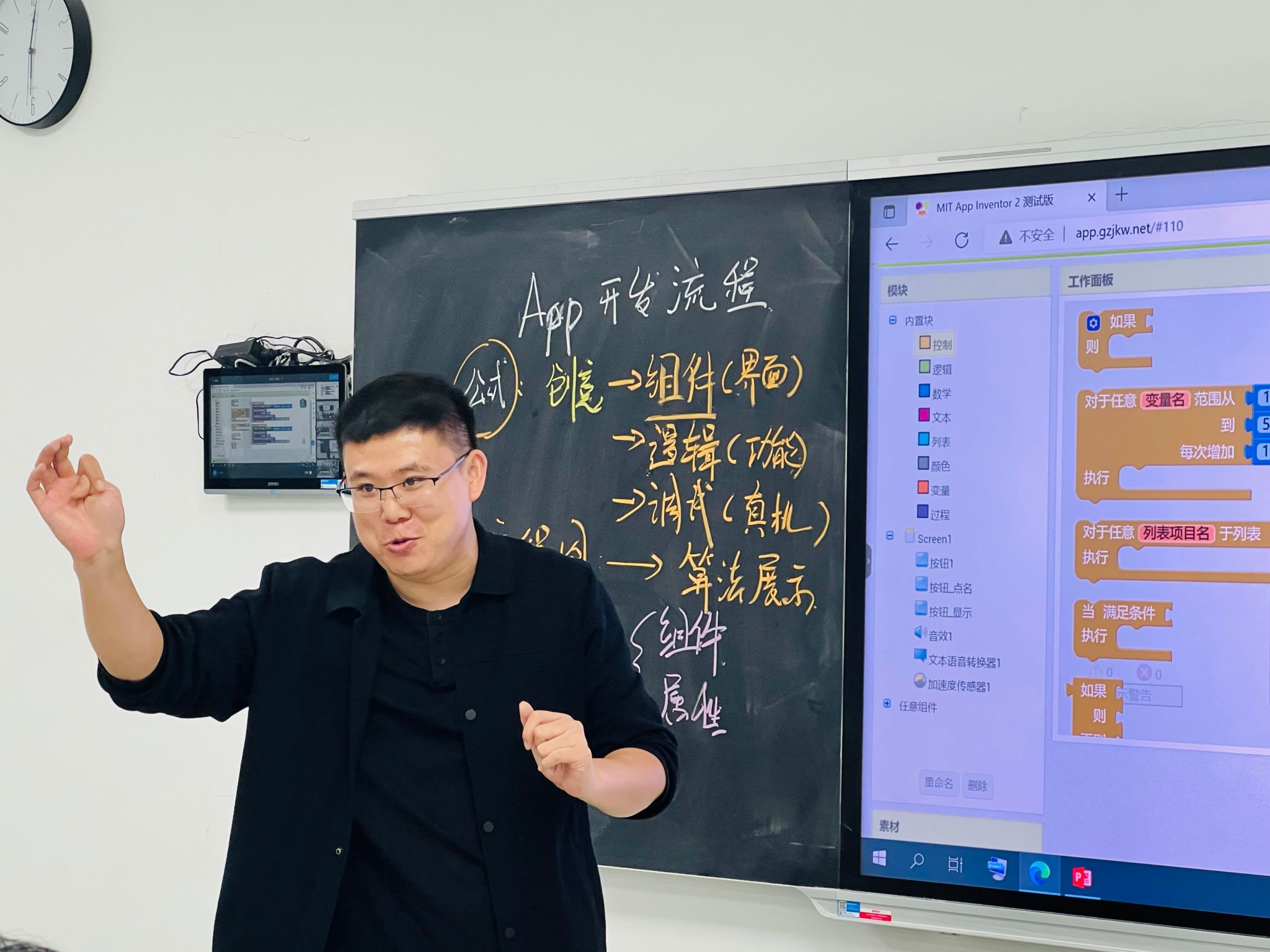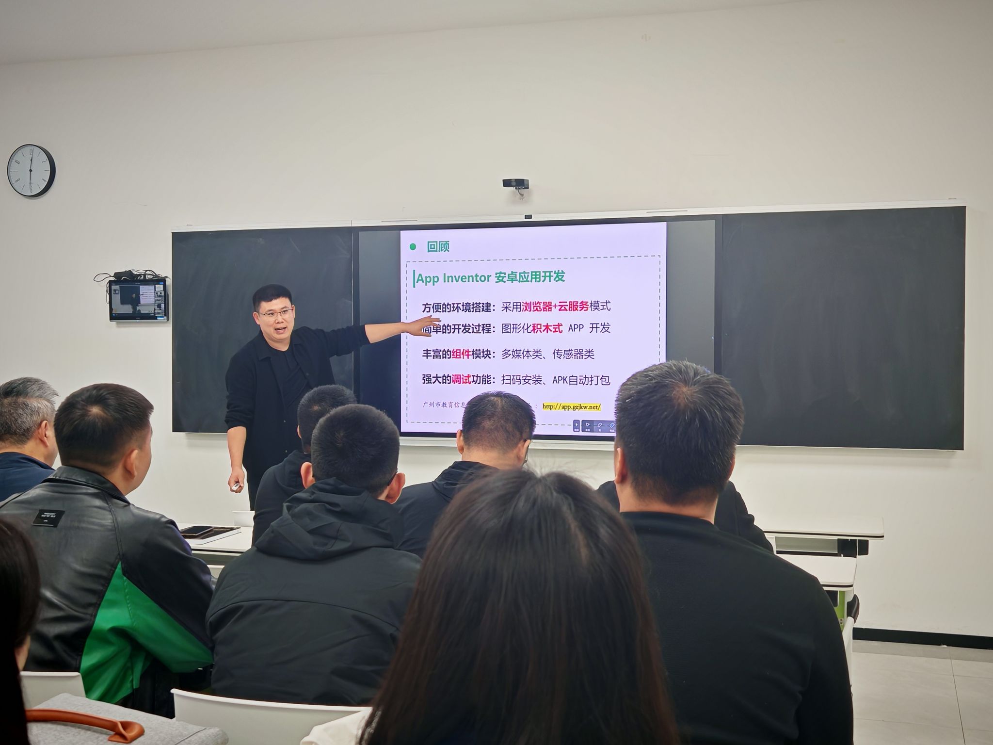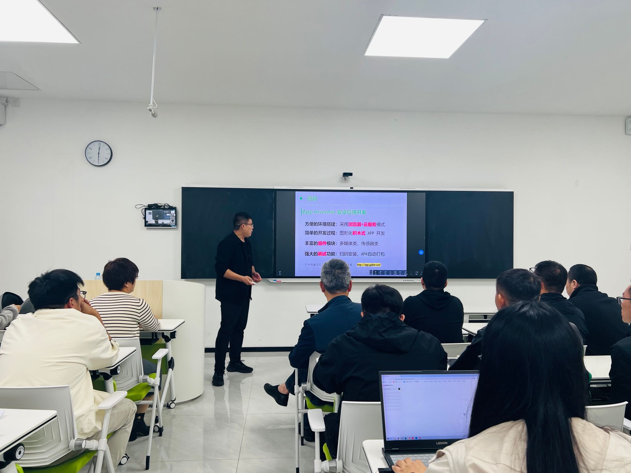 在讲解过程中,卢星儒老师强调安卓应用程序开发是一个涉及多个阶段的复杂过程,包含着需求分析、项目规划、项目设计、环境搭建、编码、API集成、测试、等多个重要步骤,这些步骤构成了安卓应用程序开发的完整生命周期,每个步骤都对最终产品的成功至关重要。他带领参训教师一起动手,从需求分析、功能设计到代码实现,一步步构建起了“点名神器”的原型。通过不断的调试和优化,一款功能完善、操作简便的点名神器应用程序成功诞生。参训教师们纷纷表示,通过此次培训,他们不仅掌握了安卓应用程序开发的基本流程和技巧,还深刻体会到了创新教学方法的重要性和乐趣。