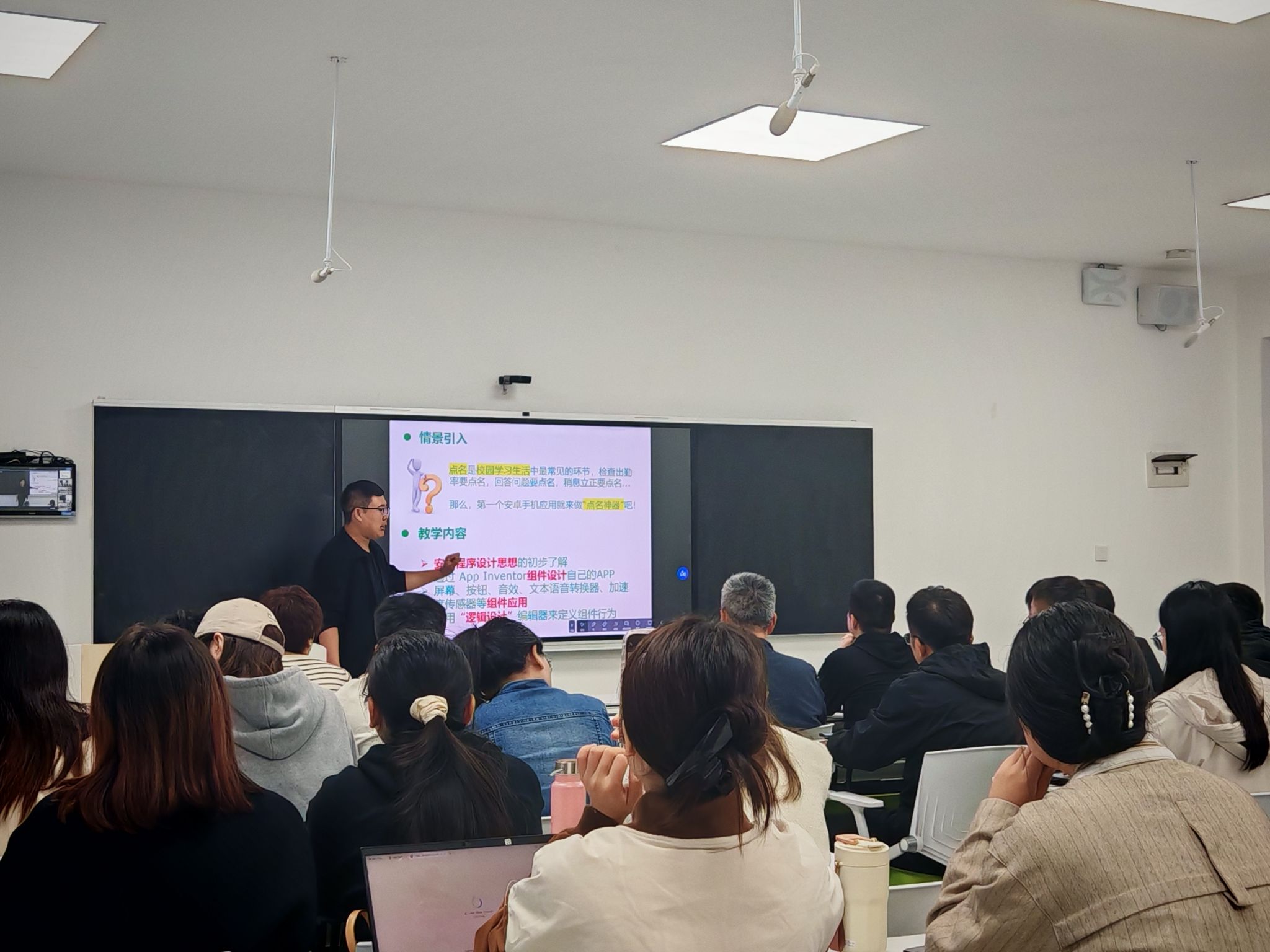 “百万奖励基金”教学示范课是重庆移通学院为推动教学改革和提升教学质量而设立的重要项目。该项目通过为获奖教师设置专项教学课题,并为广大教师特别是青年教师开设示范课的专题培训,充分发挥优秀教师在教师培养过程中的辐射和示范作用。此次示范课由计算机学院卢星儒老师主讲,他以“点名神器”安卓应用程序开发为主题,向参训教师展示了如何通过创新教学方法,将理论与实践相结合,提升学生的实践能力和创新精神。