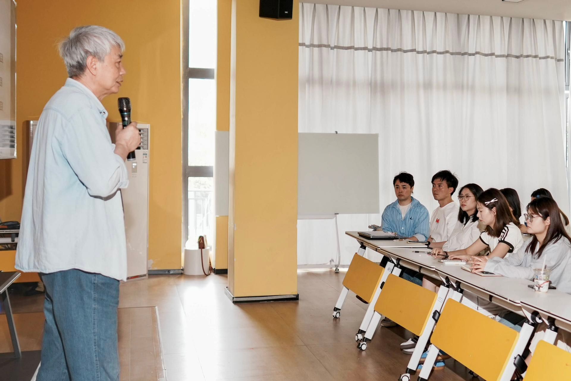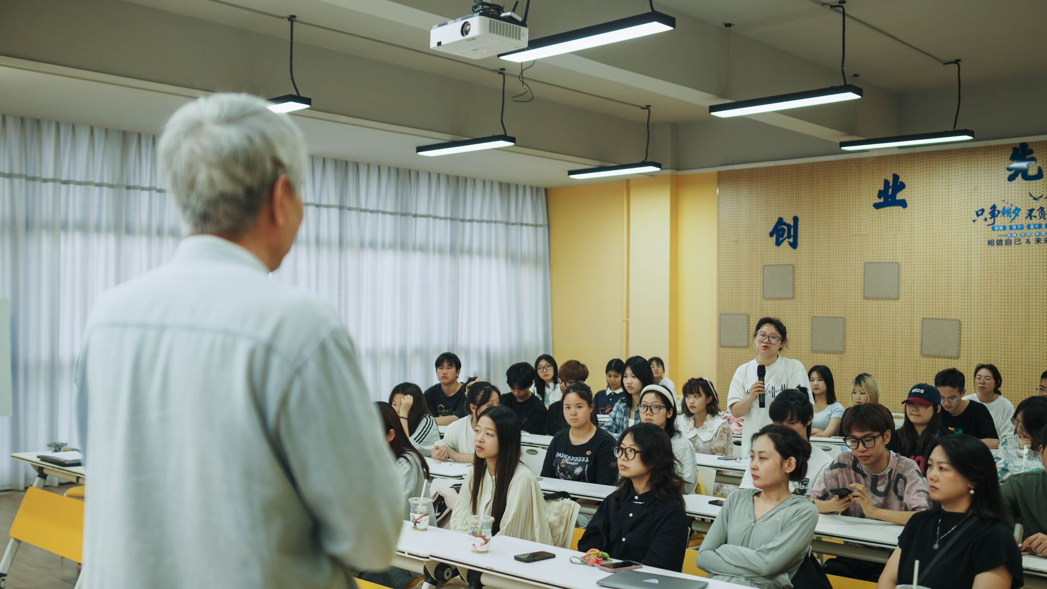 袁教授讲解结束后,与学生们进行了互动交流。学生们向袁教授提出了他们在作品设计与创作过程中遇到的问题和疑惑。针对学生在实践中遇到的广告作品主题内容与技能形式表现的冲突、创意与广告诉求的矛盾以及新科技的运用与作品参赛要求之间的平衡等难题,袁教授进行了详尽且耐心的解答。通过袁教授的细致讲解,学生们更加准确的把握了大赛的相关参赛要求,对广告创作主题有了更加深刻的理解,学到了如何在创作中巧妙平衡各种要素,提升作品的艺术质量和竞争力。