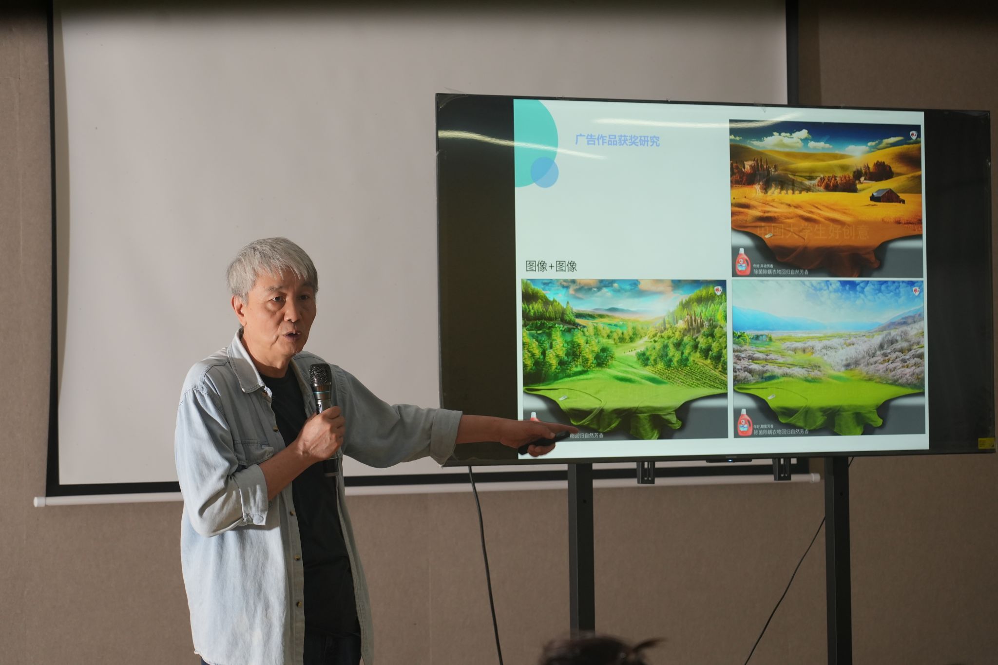 大赛启幕,创意涌动,未来星光熠熠可期。随着第16届全国大学生广告艺术大赛创作阶段的深入,为充分以竞赛为契机,提升戏剧影视学院内涵建设工作实效,激发学生的创意创新潜能,提升作品的艺术质量。戏剧影视学院于5月17日下午特邀重庆大学艺术学院袁恩培教授,在瀛溪书院语者演讲培训室举办了大赛获奖作品解析讲座。