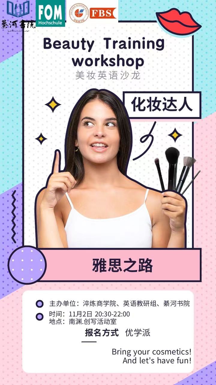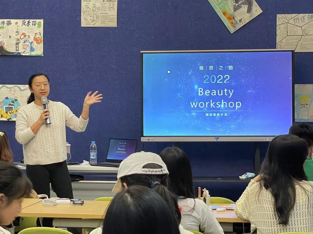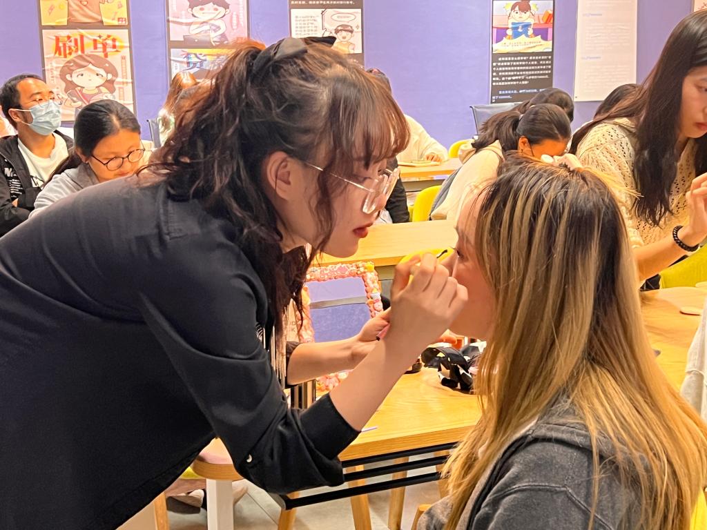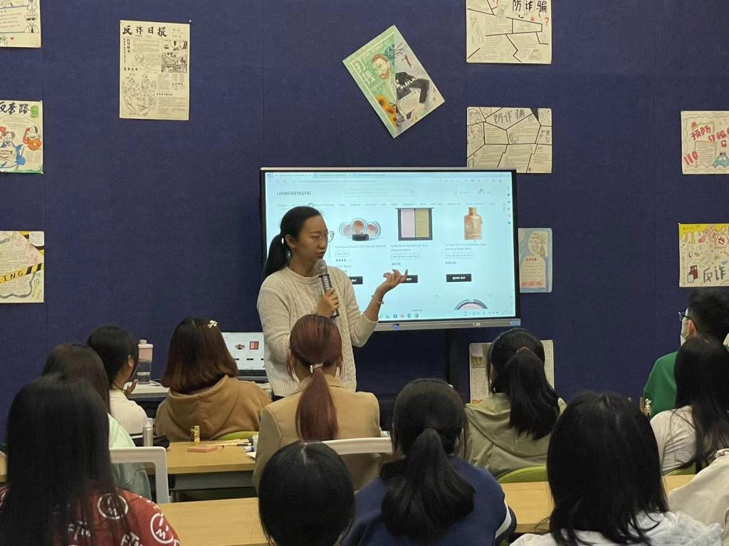 流光幻彩,闪耀每刻。淬炼国际商学院联合綦江校区英语教研组、綦河书院于11月2日晚在南渊创写中心开展了一场让人期待已久的美妆沙龙活动。2021级工商管理本硕连读1班全体同学参与,并吸引30余位学生及老师。本次活动是雅思之路与英语角的首次融合,所以本次活动全程使用英语交流。
