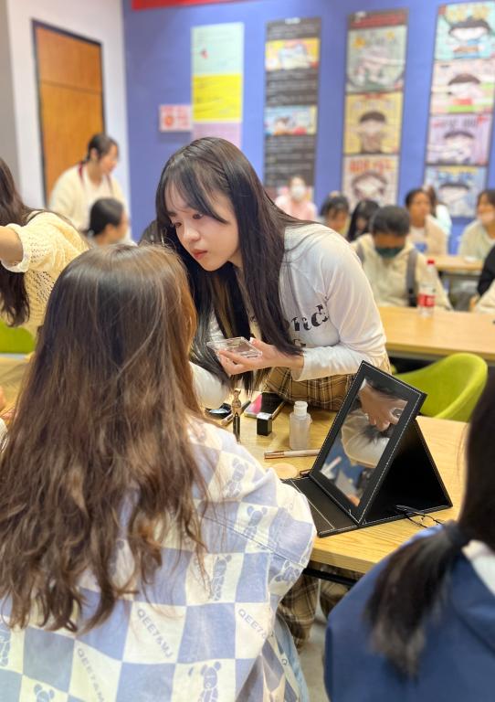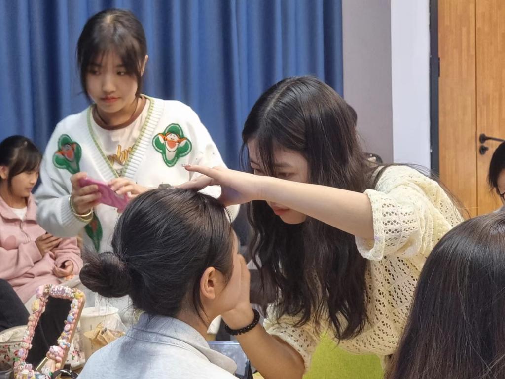 整个化妆的过程持续到10点,同学们的热情也持续不减,这让我们不禁感慨今时今日,我们对美有着截然不同的认知和理解,但是恒古不变的是我们对美的不断追求和心之向往。就像我们向往眉梢眼角藏秀气,声音相貌露温柔的温婉知性,也会中意温婉去雕饰、清水出芙蓉的自然清新。美好的容貌,曼妙的身姿。风吟的内心,有趣的灵魂,这使我们成为了更好的自己。