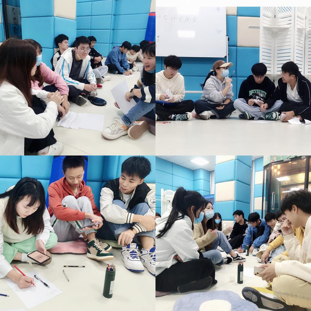 冯俊豪:今日异科导师张老师在心理中心开展了见面会,见面会中我们将自己想在活动中收获的体验写在纸上,将它折成纸飞机同时向后飞,我觉得这种活动形式新颖独特,代表着我们的见面会活动启航。心理中心设备十分丰富,有唱吧、放松椅、沙盘等设施,老师还准备了棋盘,我也在最后与同学们吃着零食,玩了很久的狼人杀,在这个繁忙的学习生活和工作中,不免是一种心理的放松、惬意的体验。