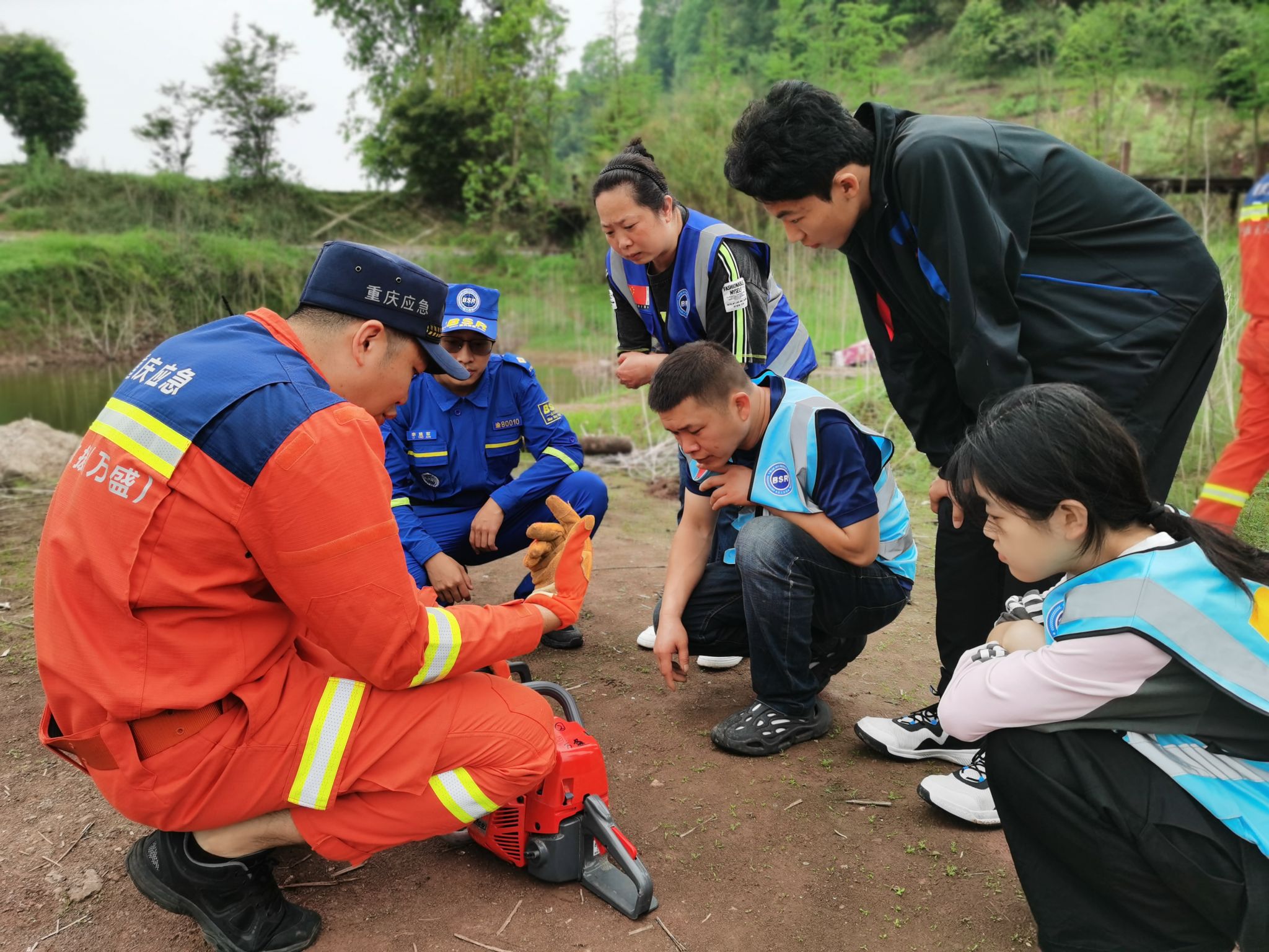 在万盛应急救援专项支队的悉心指导下,移綦向蓝天·应急救援志愿服务专项支队的队员们学习了风力发电灭火器、水枪、油锯等设备的基本操作技巧。队员们全神贯注地聆听专业讲解,积极学习各项操作技能,并在实际操作中展现出良好的动手能力。志愿者们积极互动,提问积极,讲师们也针对大家的疑惑进行了详细的解答和指导。在多次的配合协调中,队员们的默契度不断提升,并在一套完整的操作流程下赢得了救援队队员们的一致赞誉。