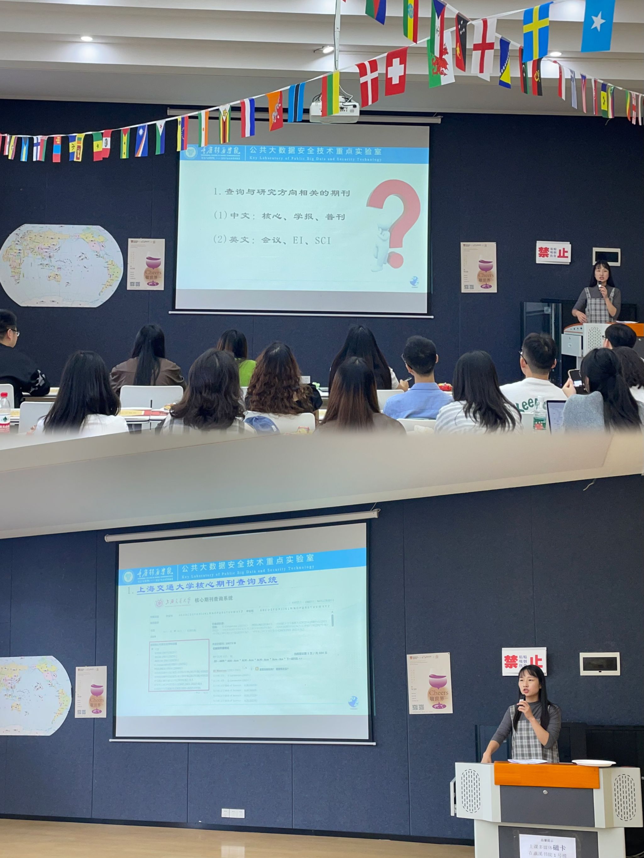 会上,王超男老师就文献检索、研究方向、撰写与投稿与专利申请四个方面做出经验分享。她以生动的语言和丰富的实例,从查询方法到专利申请进行了详细的讲解,阐述了自己的科研方向和近年来的研究成果。
