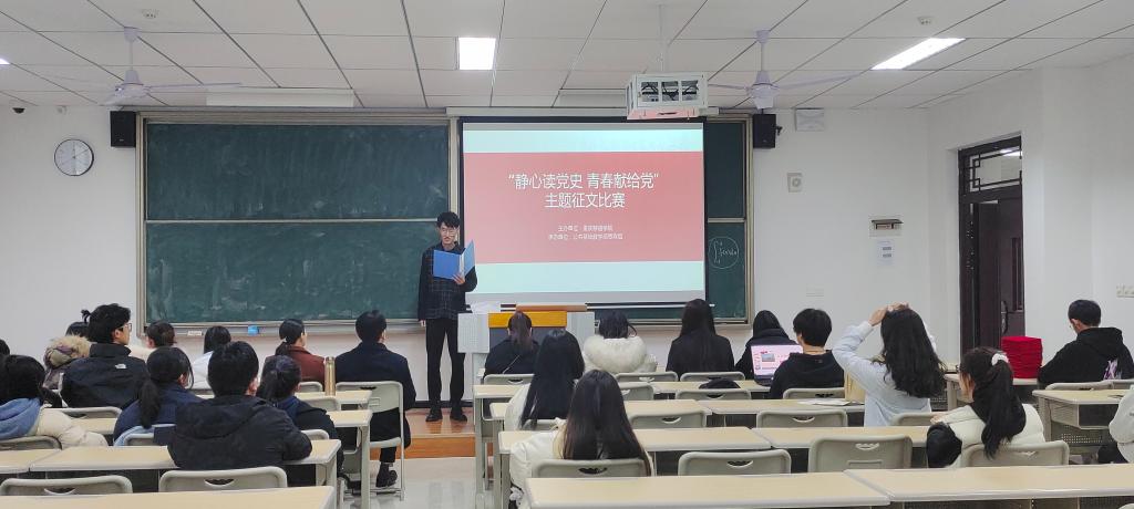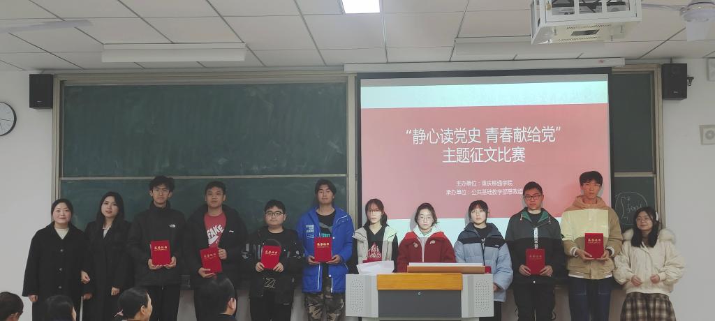 为庆祝中国共产党成立100周年,深入学习贯彻习近平总书记在“七一”重要讲话精神,公共基础教学部思政组举办“静心读党史 青春献给党”主题征文比赛。綦江校区全体学生参与了此次比赛初赛,此次征文比赛从2021年10月开始收集作品,11底完成作品收集,经各评委初赛推选,共20名选手参与了此次决赛。