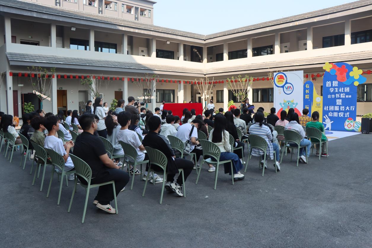 10月21日下午15:00,首批学生社团结对书院揭牌暨学生社团交流与服务大厅启用仪式于横山书院中庭圆满结束。我校团委副书记蔡星宇、书院部副部长曹玉姣、各书院综合办主任、书院学生发展导师代表、学生社团指导老师代表、部分学生社团负责人等出席仪式。