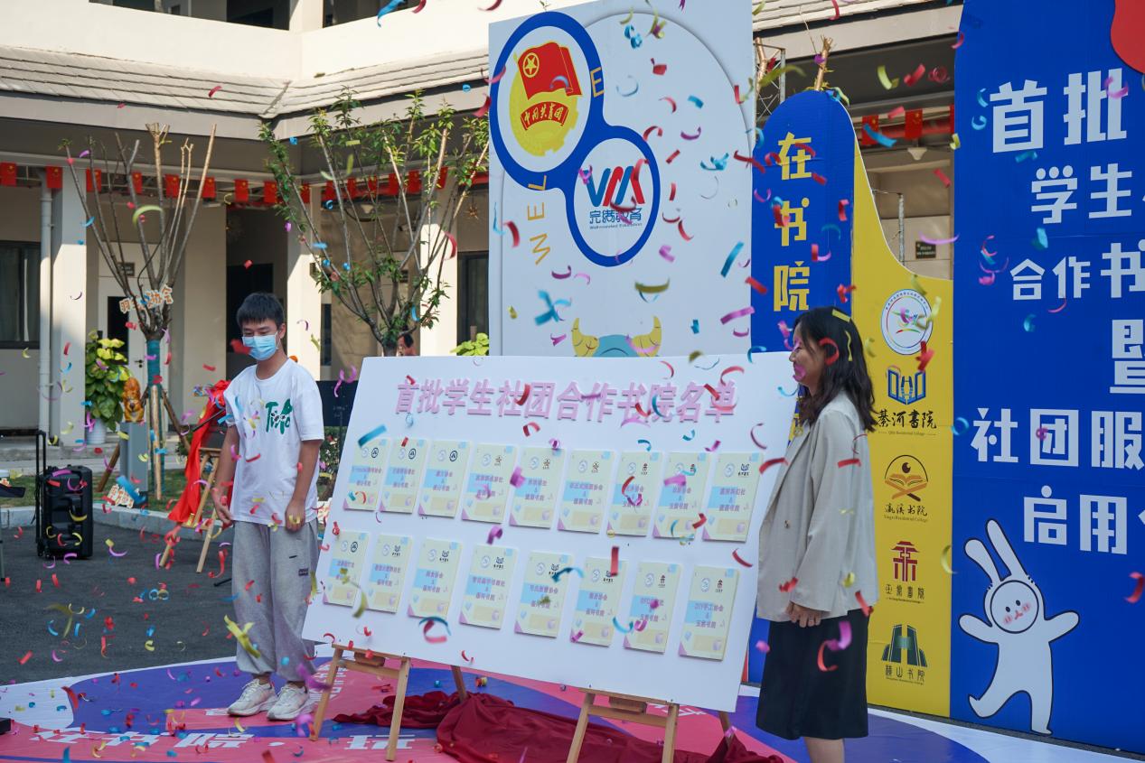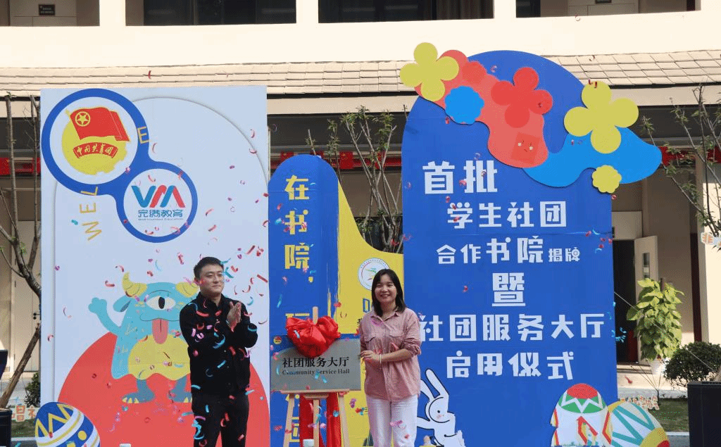 校团委副书记蔡星宇、书院部副部长曹玉姣为学生社团交流与服务大厅启用正式挂牌!