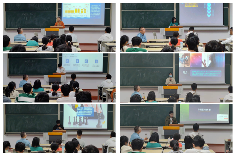 经过第一周的学习后,同学们接到了第一项任务,共同制作关于QUICK BI的PPT并在本周课堂上与同学们共同研讨,在制作过程中,各组成员都积极配合,团结协作,主动承担演讲人的这一职责。通过课堂上PPT的展示就可以看出同学们认真负责的学习态度和严谨务实的工作作风。让我们来看看同学们的精彩表演吧!