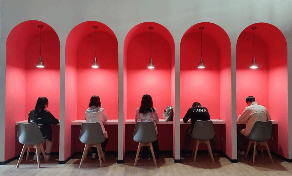 自习室里,带着金色复古造型的灯,点亮了每一个隔间,划时代的造型,时刻告诉前来的每一位学子:“你所花的每一秒,都有意义。”