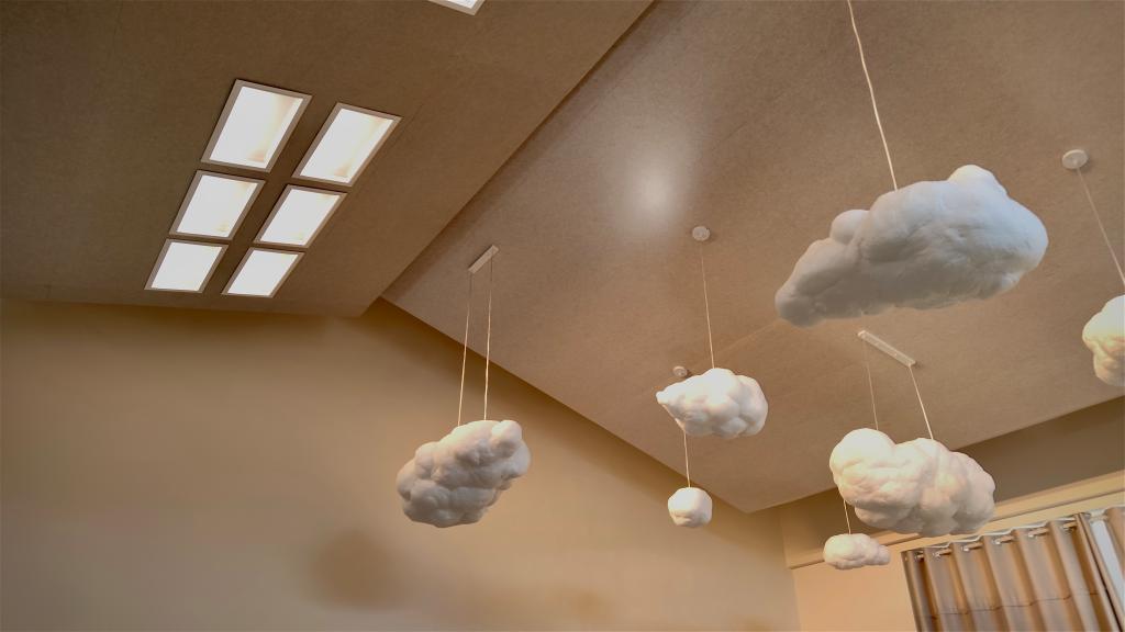 “灯泡制造了光,而我们制造了灯,为光赋予了形状。”正是如此,洁白的灯光被捏成云朵的形状,在你静静发呆时的头上,等待着与你对视的目光。房顶的青空,可以把暖阳的光时刻洒在云的每一个角落,坐在这里,即使是阴天,也无法阻挡它如余晖般温柔的体贴。