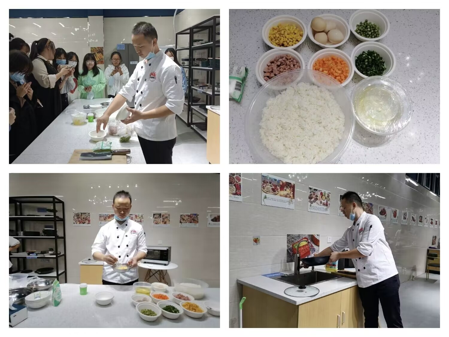 人间最好的味道是柴米油盐,最简单的家常饭菜往往最能勾起人们的回忆。为了加深同学们的理解,让同学们更快融入到课程当中;包斗涛老师为我们亲自演示了展示扬州炒饭的做法。首先,包老师带领同学们进行厨具清洗、食材处理等一系列的准备工作;看似鸡毛蒜皮,却无法或缺;包老师强调,不要轻视每一处细节,往往细节决定成败,就好比做菜,往往前期准备的精细度决定了一道菜最后的完成度,人生亦是如此,只有做好每一件小事, 才能迎来成功。同学们若有所思,短短的一节烹饪课,却蕴含着复杂的人生哲理,同时也是书院作为交互性、共享式的育人平台的重要体现。
