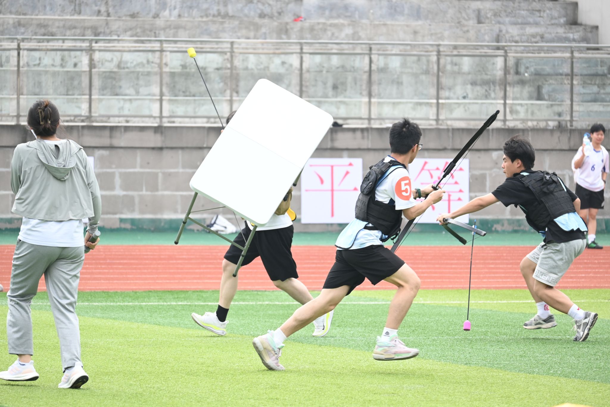 近来,一种名为攻防箭的运动逐渐成为年轻人社群活动中的新晋宠儿。攻防箭揉和躲避和射箭元素演化而来,极具趣味性、挑战性、刺激性。为培养我校学子乐观、坚韧的人生态度和明智的决策能力,观云书院结合家风家训“不忧不惑”,2024年5月10日15:00,在校足球场上开展“箭在弦上,势不可挡——攻防箭大作战”活动,邀我校学子共同感受攻防箭所带来的乐趣和挑战,彰显年轻学子的智慧与勇气。