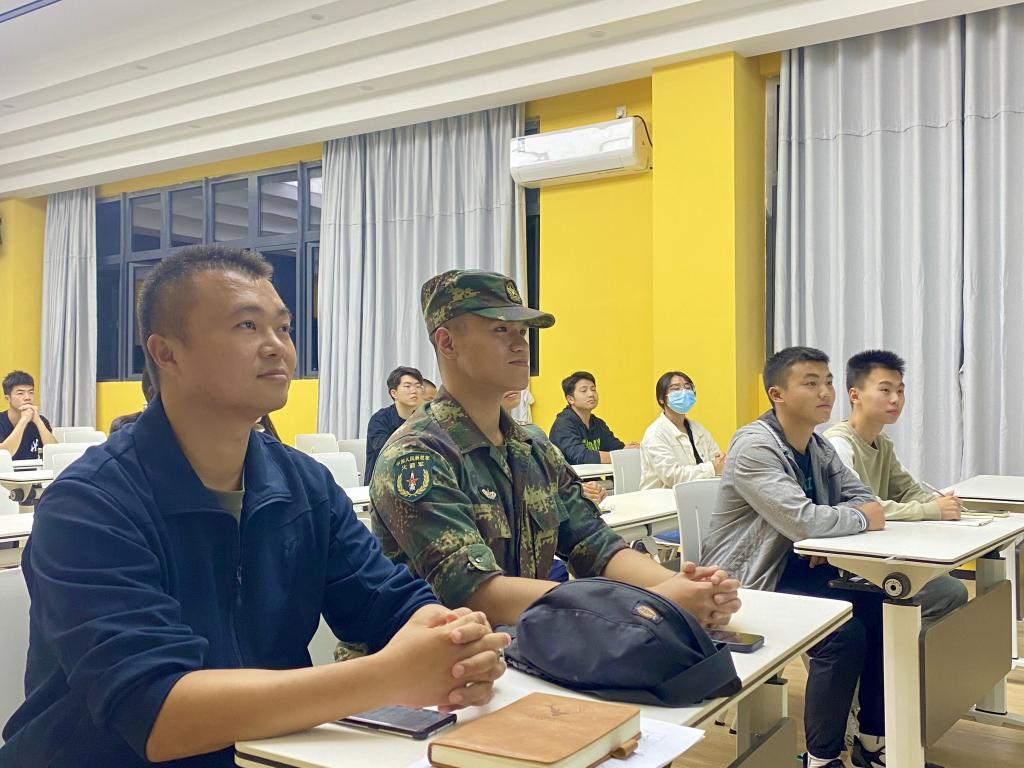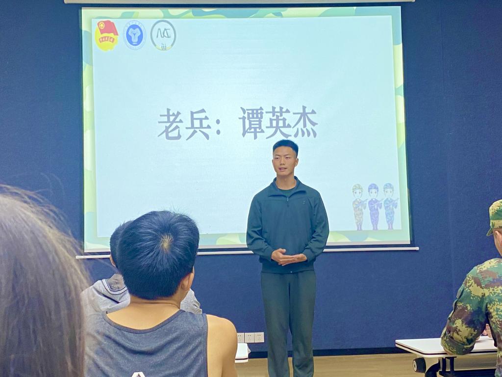 见面会上,我们也邀请到退役复学的老兵们分享他们特别的经历,退伍老兵谭英杰分享到:在加入迷彩俱乐部的这一年,一起参与“綦迹之境”城市生存挑战赛为同学们讲解军事国防,在一场场活动中收获许多欢乐、收获志同道合的朋友、更收获不一样的大学生活。老兵刘红滟分享她在部队的经历:生逢其时,曾有幸参与过两次重大演习,身临其境的理解了军人的不易。作为一名通讯兵,训练时并不比男兵弱一分,甚至因为自己是女生,反而更要强、对自己要求更高,时刻提醒自己要将这来之不易的机会发挥到极致。老兵徐新智分享到:当初参军报国,是为了弥补自己没能在重庆洪水时救人的遗憾,在部队时也一直提醒自己,加强锻炼、不忘记军人的良好作风,保证自己的身体素质可以随时做到支援前线,也为自己的理想奋发努力!