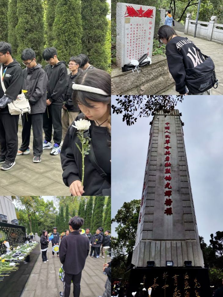 小雨停歇,微风拂面,经历了漫长车程的同学们井然有序的进入烈士陵园,活动也正式拉开了序幕。“献花,默哀,朗诵”——他们正用自己的行动激励着当代大学生勿忘历史,牢记使命的坚定信念。一寸山河一寸血,一杯热土一缕魂,革命先烈的英魂永远在我们心间,我们将怀着这份信仰踏上未来的征程。