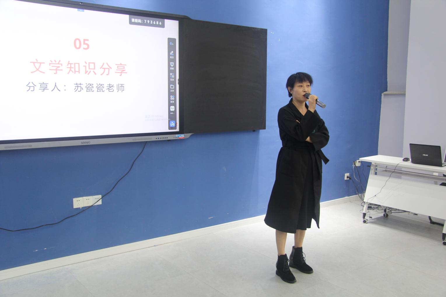 接着,特邀嘉宾创意写作学院的苏瓷瓷副院长上台分享了在合川校区带领社团的经历,戏称是同学们带着她运作社团,向社员展示了自己随缘不拘束的一面,直言要让社团活起来,将自己融入到社员当中,与社员同行。