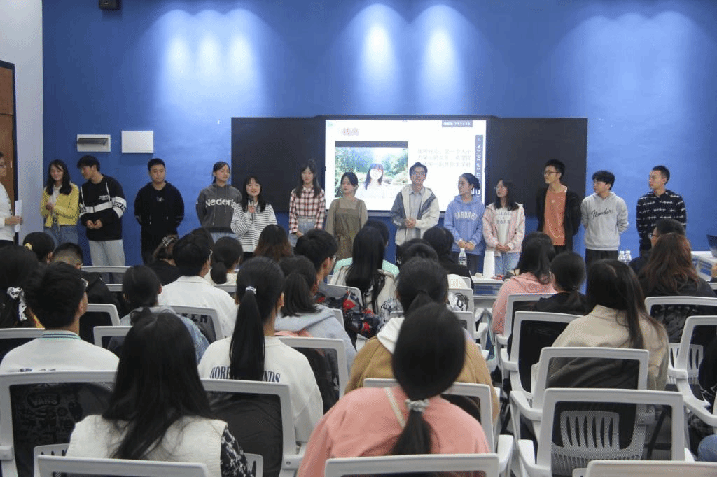 同学们报以热烈的掌声,萧老师接过话头说:綦字在古时有通“极”的意思,意味要达到顶点,綦迹古语亦作“綦跡”、亦作“綦蹟”足迹;重庆移通学院创意写作学院綦迹创意文学社的名称同时蕴含两种意义,有足迹之意,也有奇迹之音。创意写作学院十名教师,作为綦江校区第一批开拓者,脚踏实地地在这里留下坚实的足迹,此为第一重含义。全体教师第一次在綦江新校区进行作家班招新,即创造出学生报名数量近一千的新奇迹,此为第二重含义。我们全体成员也跟随綦迹创意文学社一起,在綦江这块土地上,留下自己成长的足迹,创造出自己的奇迹。故此,取名綦迹创意文学社。