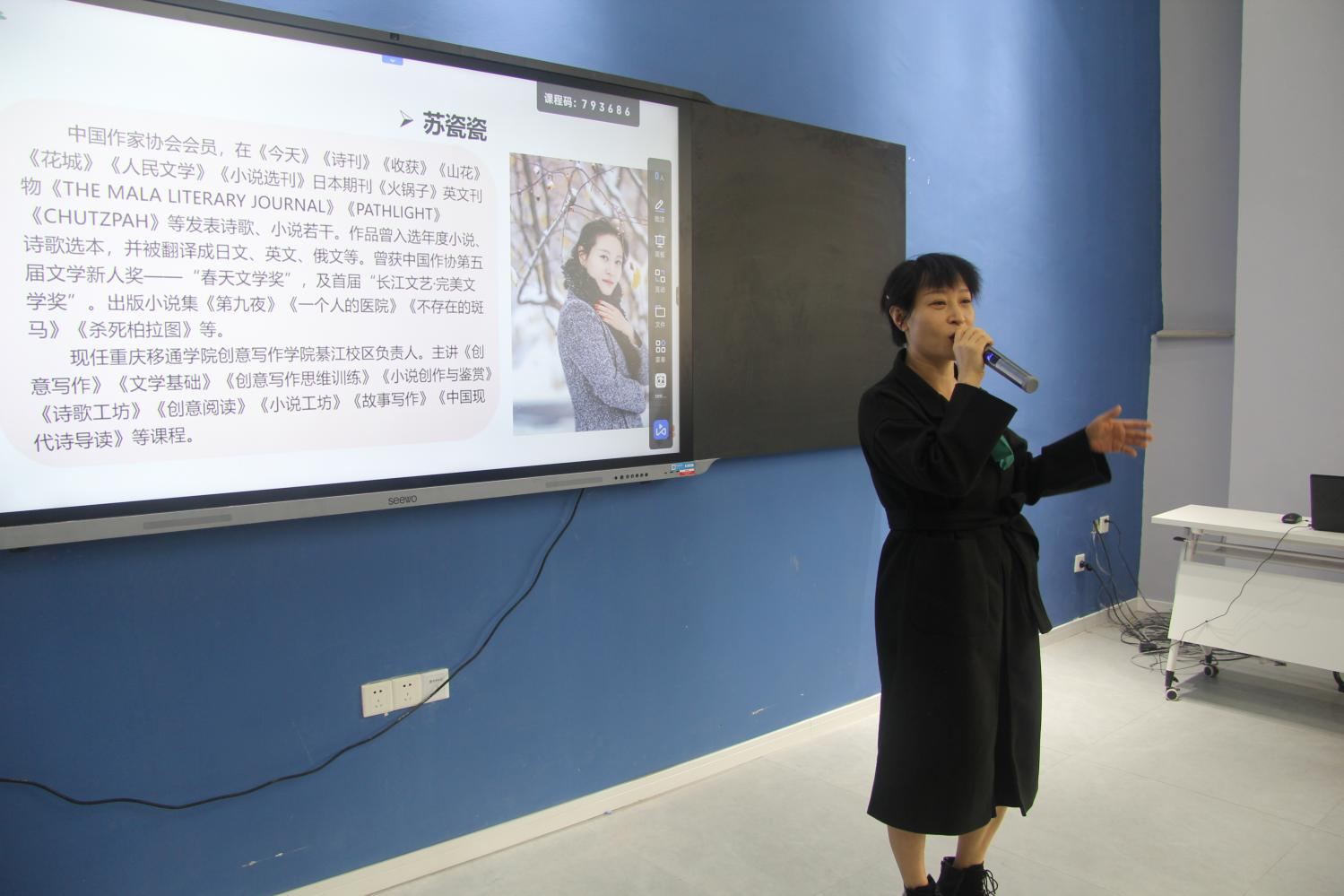 为推进完满教育理念,深入落实立德树人任务,提高学生自主管理能力,丰富学生的课余生活,重庆移通学院綦江校区举办了綦迹创意文学社成立庆典暨全体成员见面会。创意写作学院其他9位嘉宾老师,由气质高雅的作家苏瓷瓷副院长带队来到了现场。