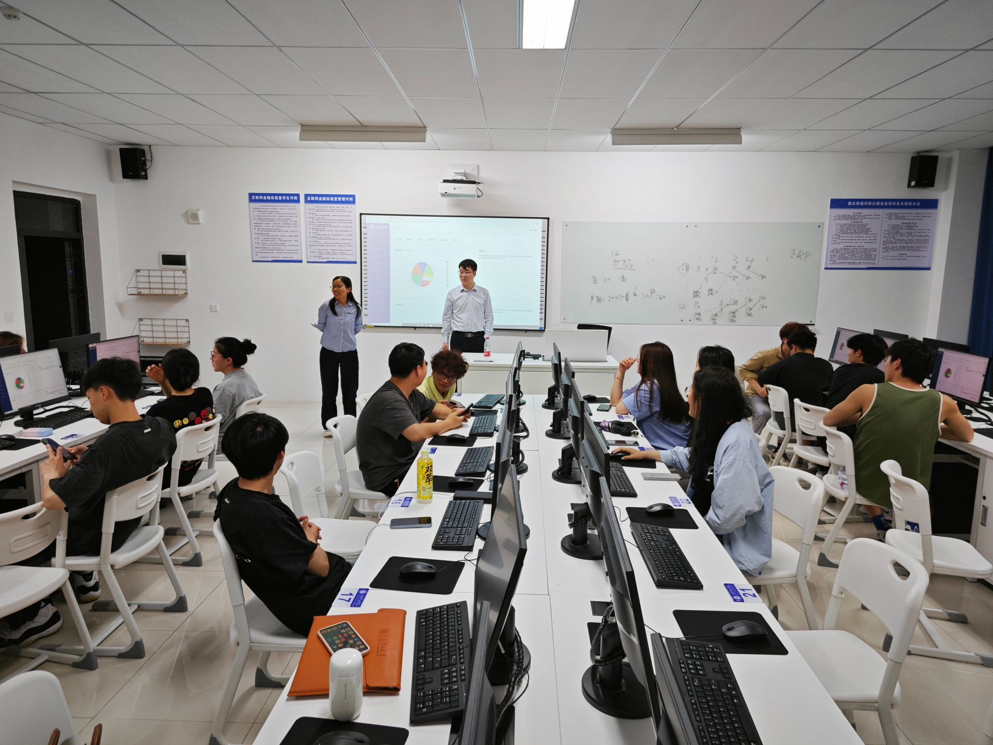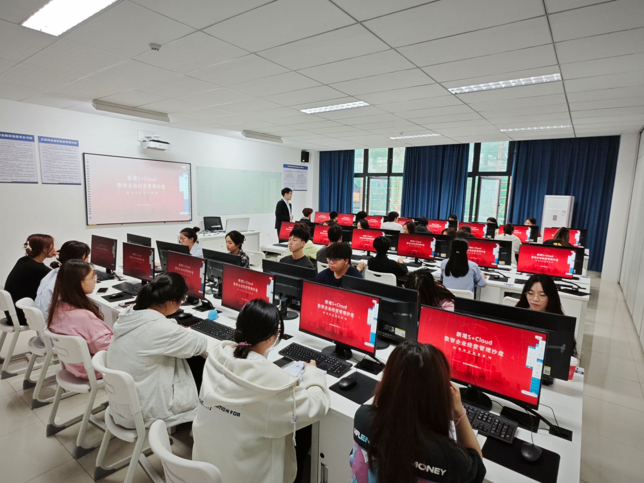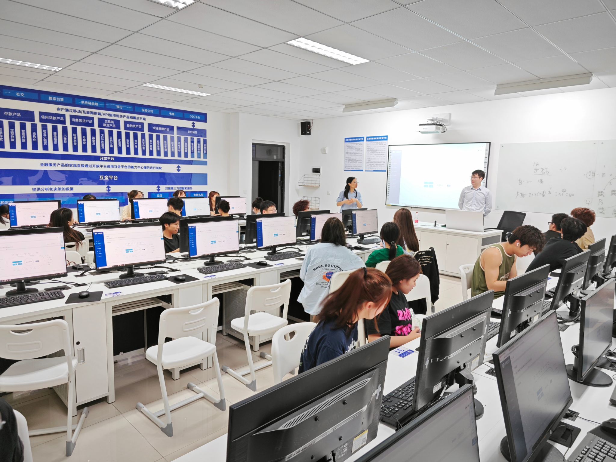 参与此次双师授课的企业高管是来自校企合作单位新道科技股份有限公司的李志良总监。李总监和陈明燕老师针对2023级数字经济专业4班的《数字经济概论》实验课,开启双师授课。
