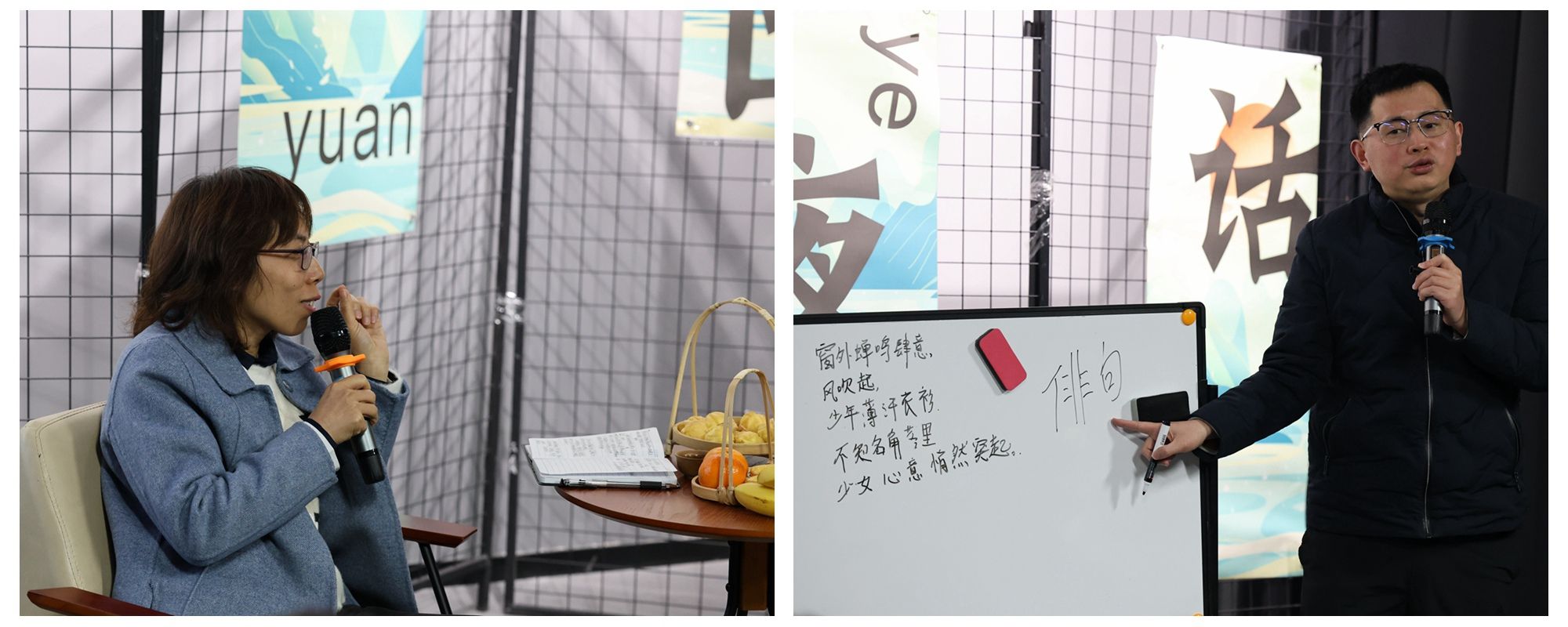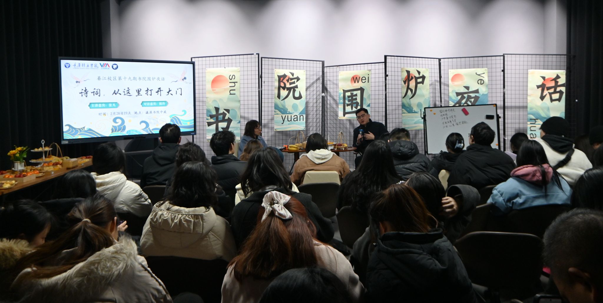 以诗言志,以歌抒怀,以文载道。为了汲取先贤的智慧和力量,发展移通学子创新型思维及创造性能力,在时光匆匆中不负韶华,在人生漫漫中拼搏进取,2月28日晚7点,书院部联动教务处在瀛溪书院弦空间主办了第十九期书院围炉夜话,本期特邀主讲嘉宾中国新商科大学集团科幻顾问张凡老师,与对话嘉宾公共基础教学部副主任陈玲老师,品一方茶,共同话谈诗词其中的意蕴。