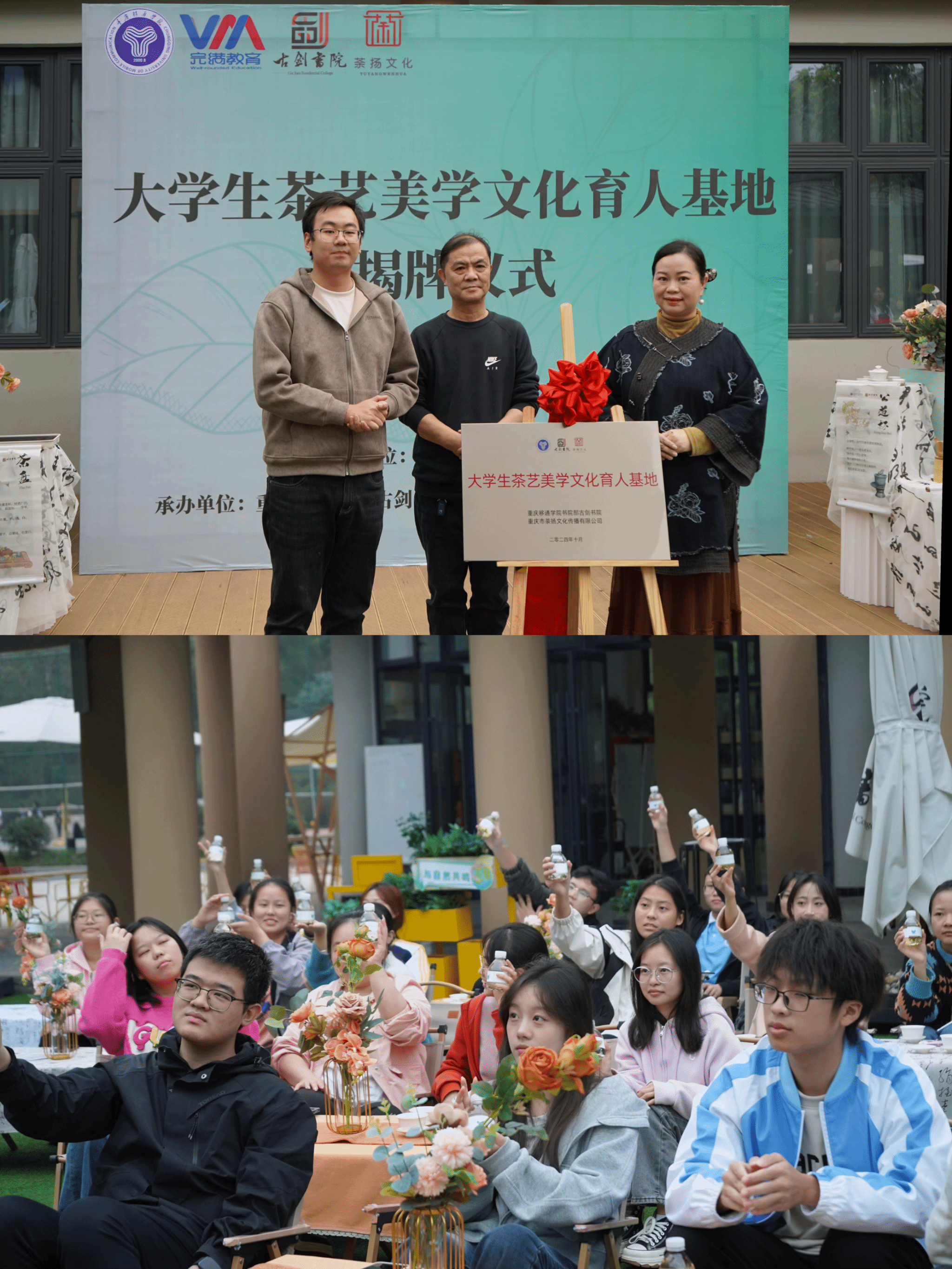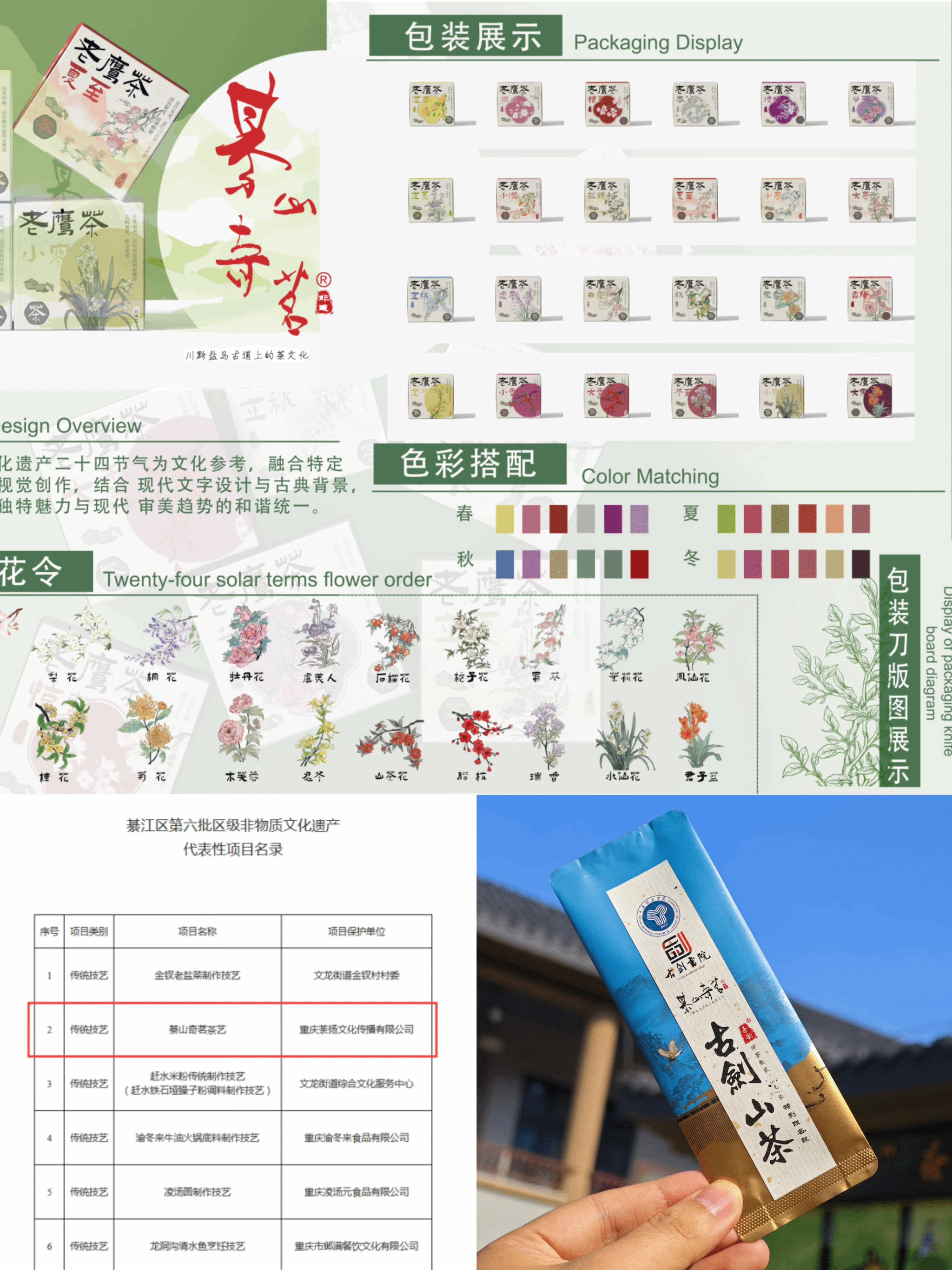 自2024年4月举办“谷雨辞春·与君共聚四月天”师生集体生日会时,古剑书院与綦山奇茗茶艺非遗传承人徐露老师结下了深厚的友谊,开始探寻茶文化在高校教育发展的可能性。在书院与綦山奇茗茶艺项目的融合推进中,主要从三个方向实现协同育人:一是阵地实践,古剑书院于2024年11月与重庆市荼扬文化传播有限公司签订合作协议,通过建立大学生茶艺美学文化育人基地,并搭建荼扬茶艺工坊,实现课程的持续性、专业性和普适性,为茶艺的学习与发展提供基础保障。二是活动实践,主要为校内的专业知识课程的集中式教学和校外的茶山采茶户外实践两部分。目前工坊正式运营5个月,已开展谷雨采茶记、小雪茶话会等相关活动共计6次,覆盖学生近千名。三是品牌赛事实践,在阵地搭建完毕后,古剑书院尝试性地将綦山奇茗品牌与相关赛事进行结合,经与徐露老师进行探讨,由书院教师带领学生团队,以“綦山奇茗”为品牌核心参加新加坡全球品牌策划大赛,目前产出相关包装设计二十四节气系列、赛博朋克系列等,相关IP形象设计“雾都兜兜”以及衍生的相关文创周边,且正在不断优化品牌策划,冲击校赛决赛。