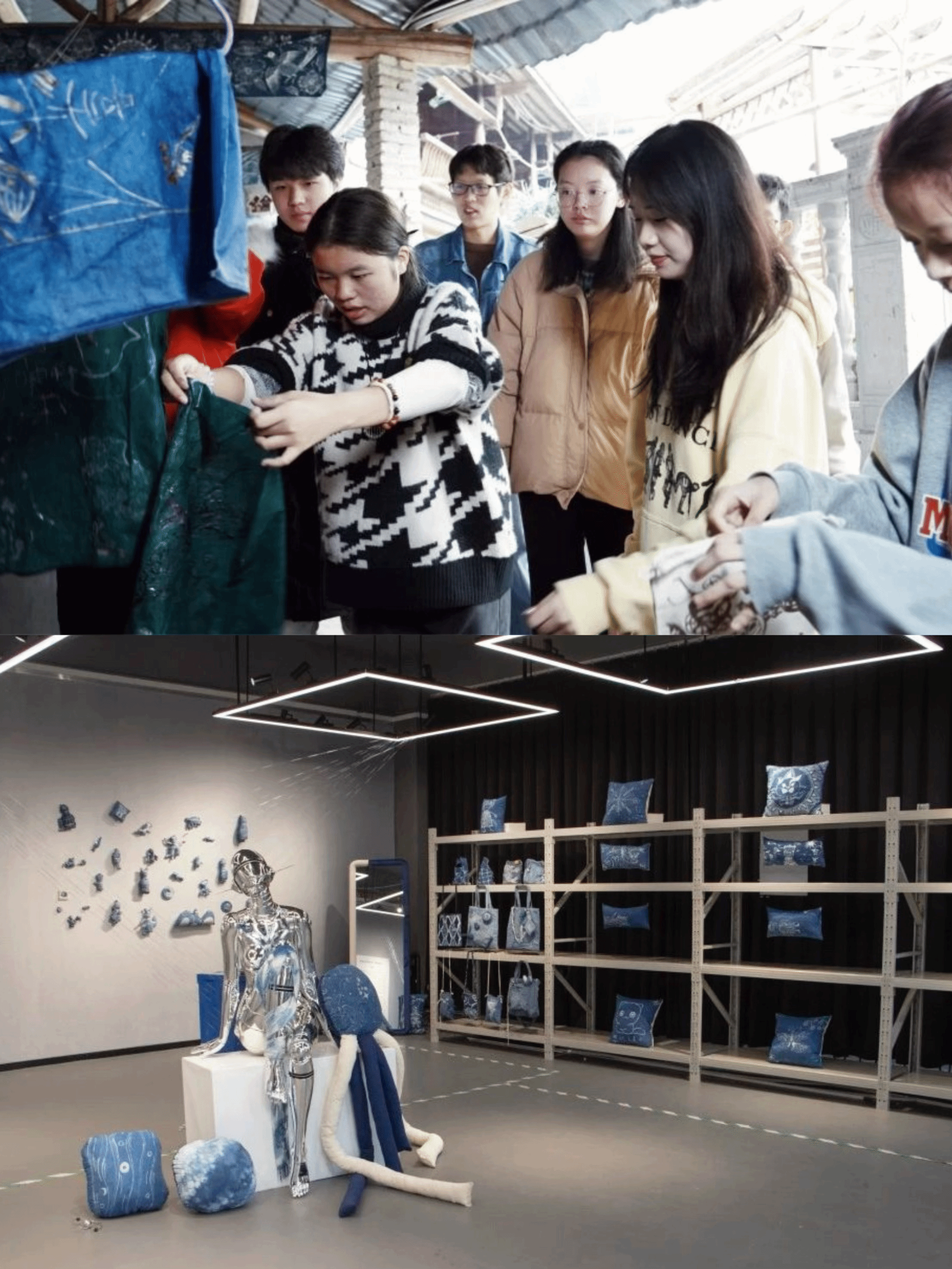 学生们通过系统化的课程学习、实践性的艺术探索、互动性的装置艺术,深入了解了蜡染、版画作为艺术媒介的价值及其制作技巧,创作出百余幅具有鲜明特点的艺术作品。这些作品不仅展现了传统技艺的魅力,更通过科幻的视角赋予其新的生命力。在这一过程中,学生学会了用当代的视角和发展的眼光看待非遗文化,探索传统文化与当代艺术的全新共生关系。