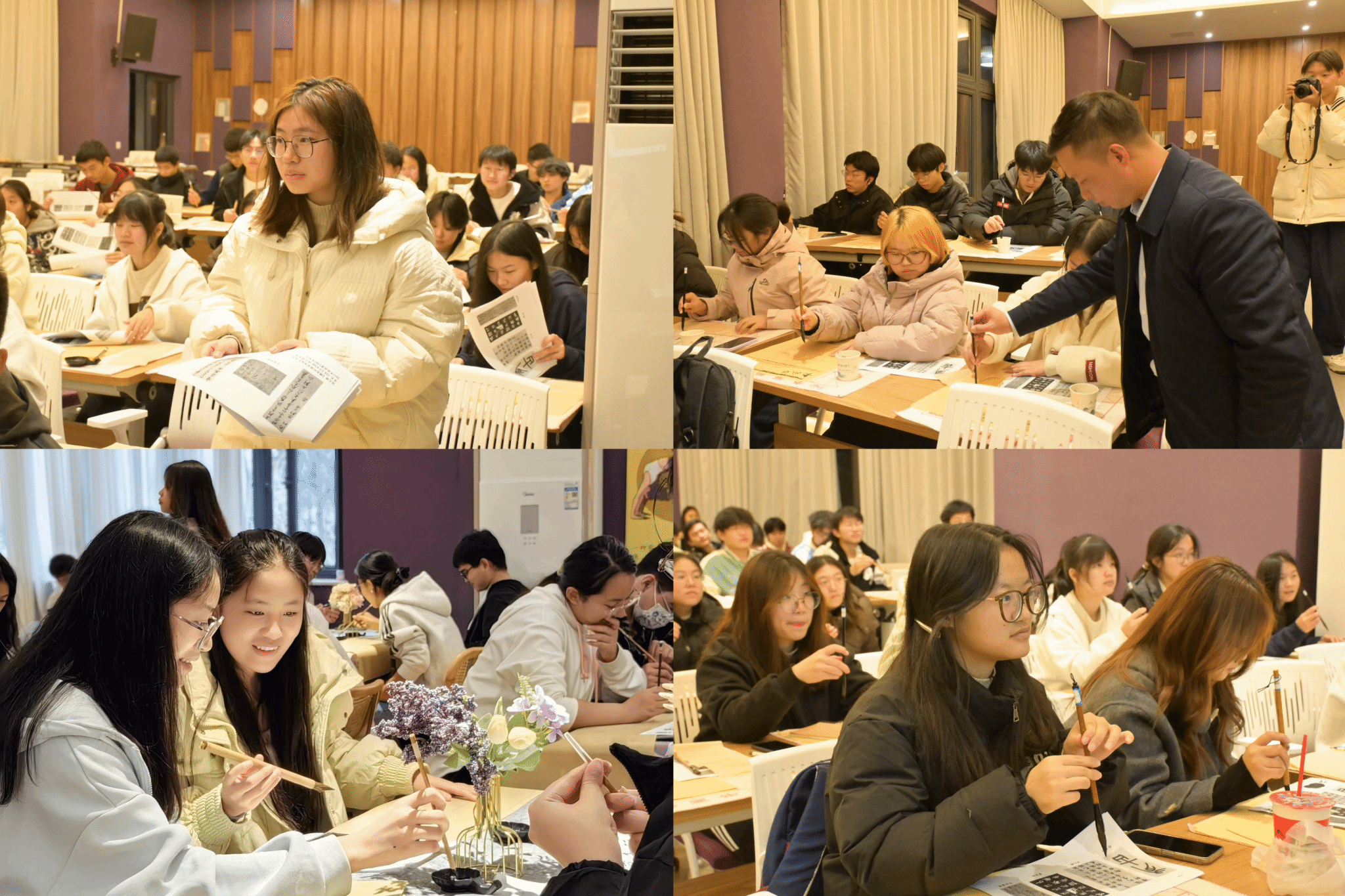 “妙笔丹青绘古今”书画体验课系列活动则通过理论与实践并重的课程设计,为青年学子搭建书法艺术研习平台。活动特邀綦江区书法家协会副主席李楠琦老师担任指导老师,并联合地域文化与城市发展研究院成立书法工坊,开设课程涵盖书法与国画两大板块。截至目前,已有800余名学子积极参与。