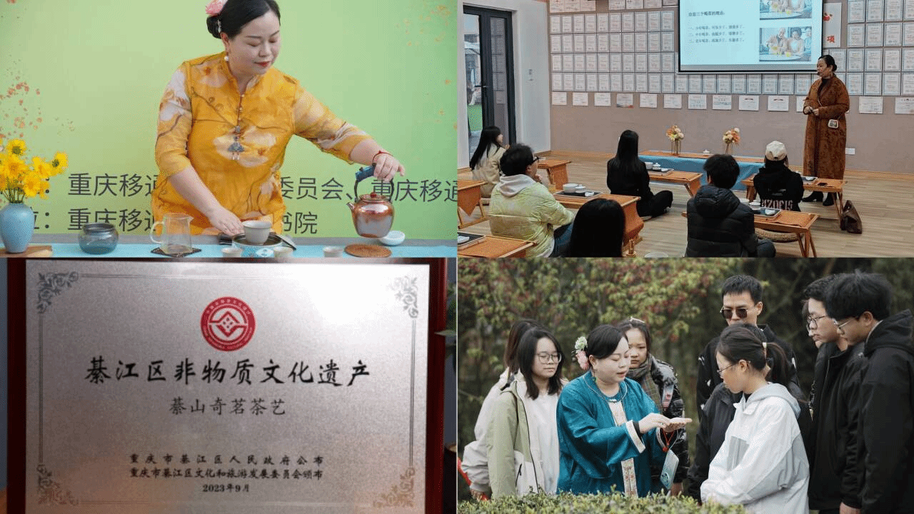綦山奇茗茶艺,于2023年9月入选重庆市綦江区第六批区级非物质文化遗产代表性项目。传承人徐露在传承祖传茶艺的基础上,结合綦江实际,充分利用綦江老茶树资源,推陈出新,创新煮茶、泡茶技法,形成了独特的“綦江徐氏茶艺”新技术。