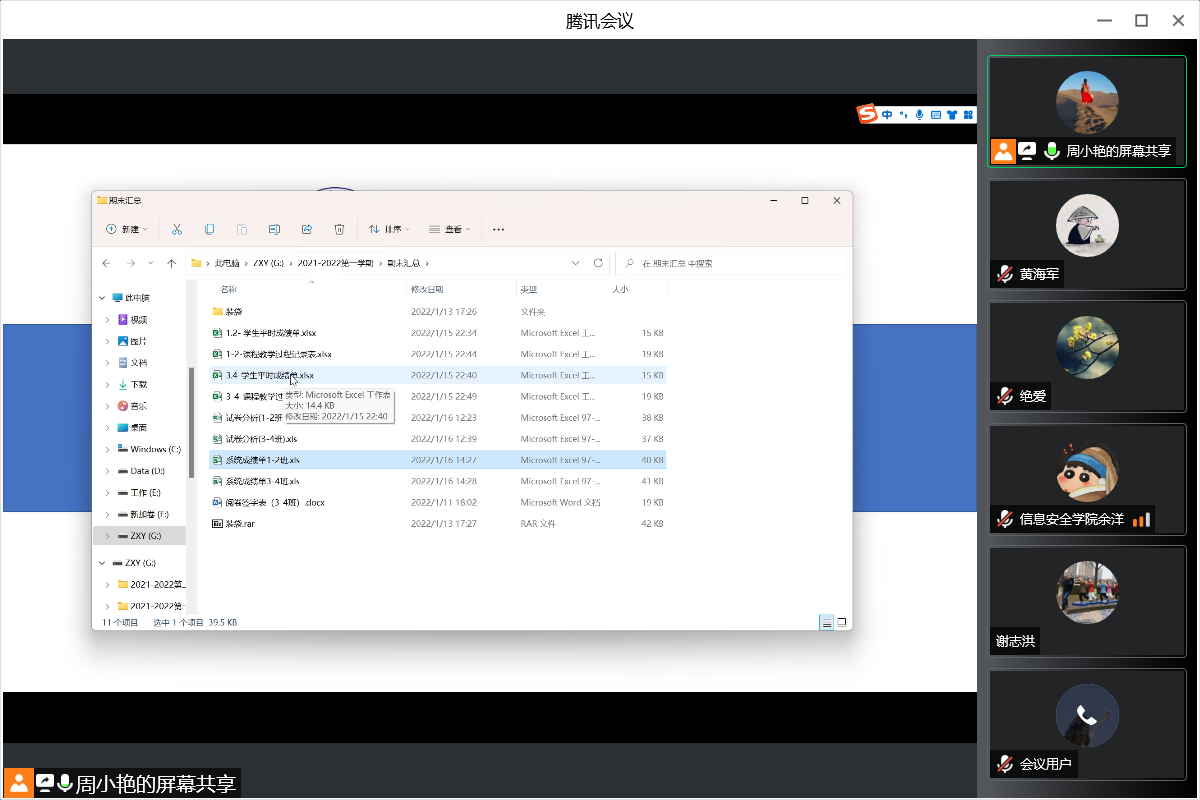 为加强学院学风考风建设,严肃考风考纪,扎实落实期末考试监考、阅卷、资料归档等各项工作, 6月13日晚上8点,信息安全学院于腾讯会议召开期末考试专题会议。此次会议由周小艳老师主持,信息安全学院全体教师参加。