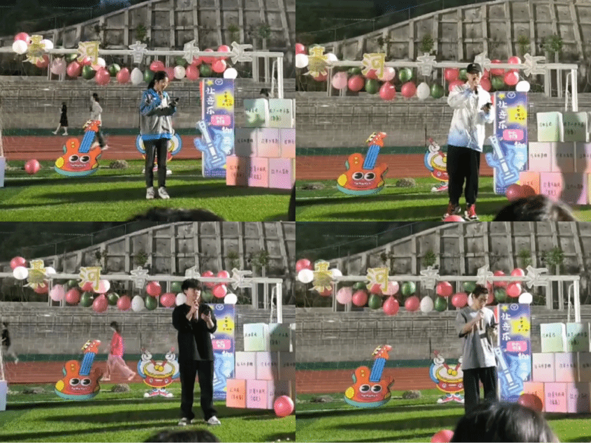 游戏环节后,又进入了参与者的演唱环节。与之前不同的是,歌曲《有点甜》和《偏爱》是由两人进行合作完成,他们的演绎丝毫不减一个人的表演,反而是增添了几分属于他们的情感。伴随着最后一首歌曲《女孩》,音乐汇活动也渐渐来到了尾声。